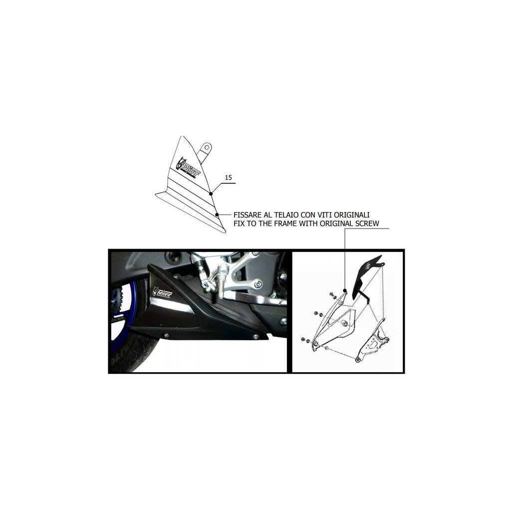 Réducteur d'échappement pour modèle Yamaha R3. Pièce en aluminium revêtue de noir. Se fixe au cadre à l'aide de la vis d'origine.