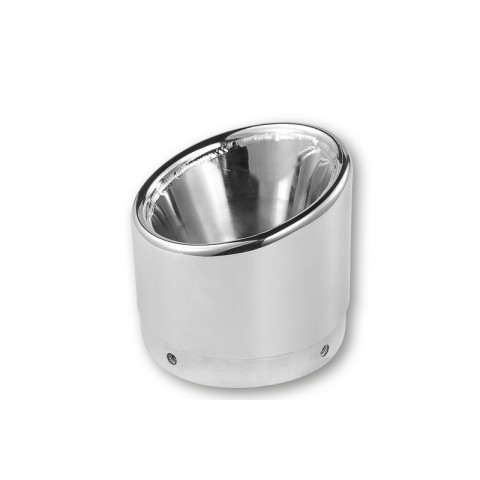 IRONHEAD End Cap Slashed. Suitable for shock absorbers with a tailpipe diameter of 88 mm.High-quality finished end cap with a bevelled shape.Create your bike according to your wishes: The end caps, which can be adjusted in four positions and are available in different shapes - optionally painted black or chrome-plated - offer extravagant styling possibilities for all IRONHEAD end pots with a round shape. For uncompromising and limitless enjoyment on your bike.Measurements: Diameter: 88 mm Length: 70 mmScope of supply: 1 piece