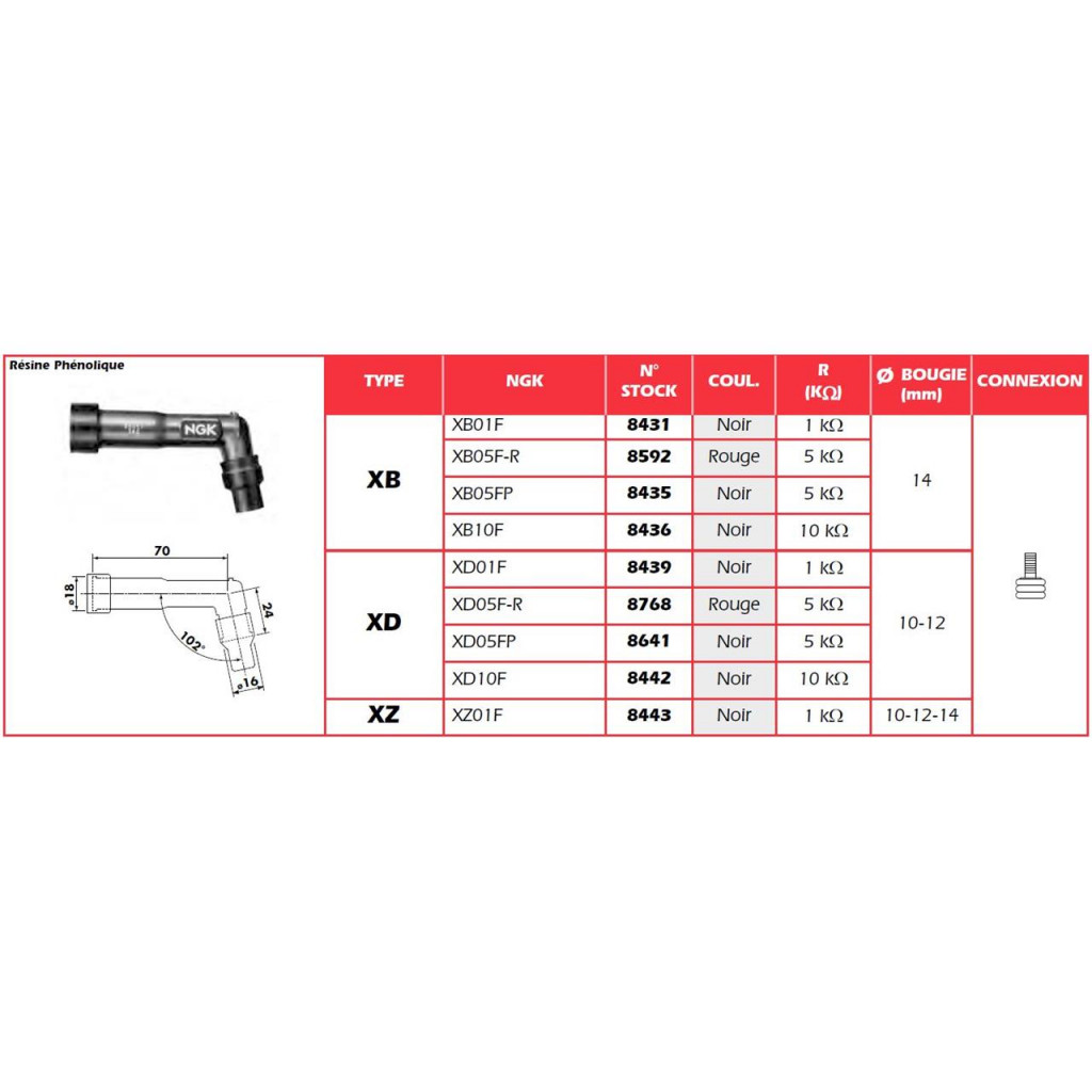 Anti-parasite NGK XB10F noir pour bougie sans olive