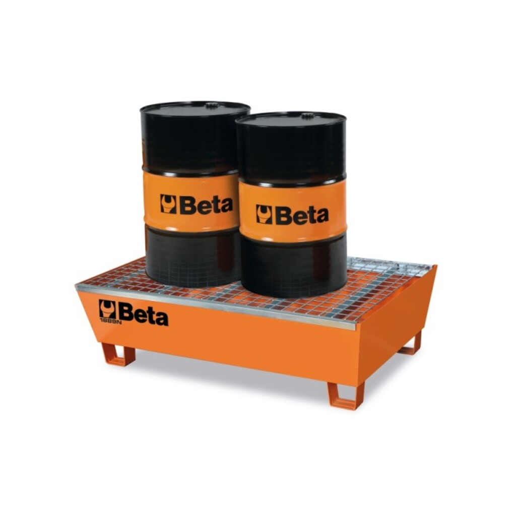 Bac de rétention en acier BETA pour la manutention et le stockage de 2 fûts de 200 litres