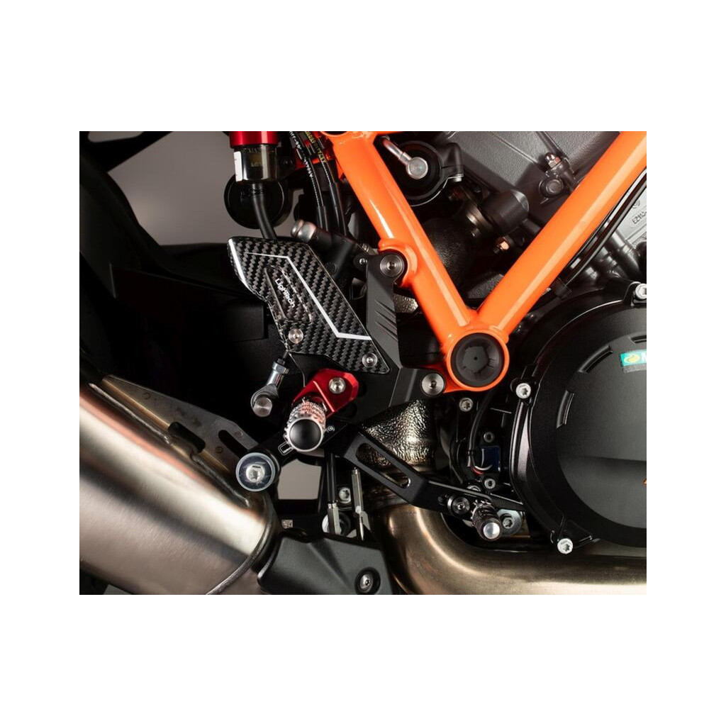Les commandes reculées "R Version" de LighTech sont le summum de la technologie racing pour votre moto.Développées sur piste à partir du "Track System" breveté de LighTech, les matériaux exotiques utilisés dans les composants distinguent les commandes R Version de la gamme standard.Alors que le jeu arrière conserve le même corps usiné CNC 7075 Ergal de haute qualité, tous les boulons sont améliorés, passant de l'acier au titane, tous les roulements sont améliorés avec des spécifications supérieures, les repose-pieds et les embouts sont repliables, la plaque de montage du repose-pieds est anodisée dans le rouge caractéristique de la version R, et le tout est complété par une plaque de talon en fibre de carbone noire, portant l'emblème unique R.