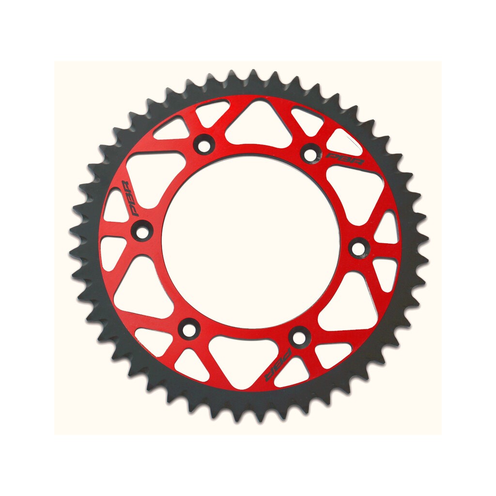 Couronne PBR Twin Color rouge/noir 53 dents alu ultra-light anti-boue anodisé dur pas 520 type 899