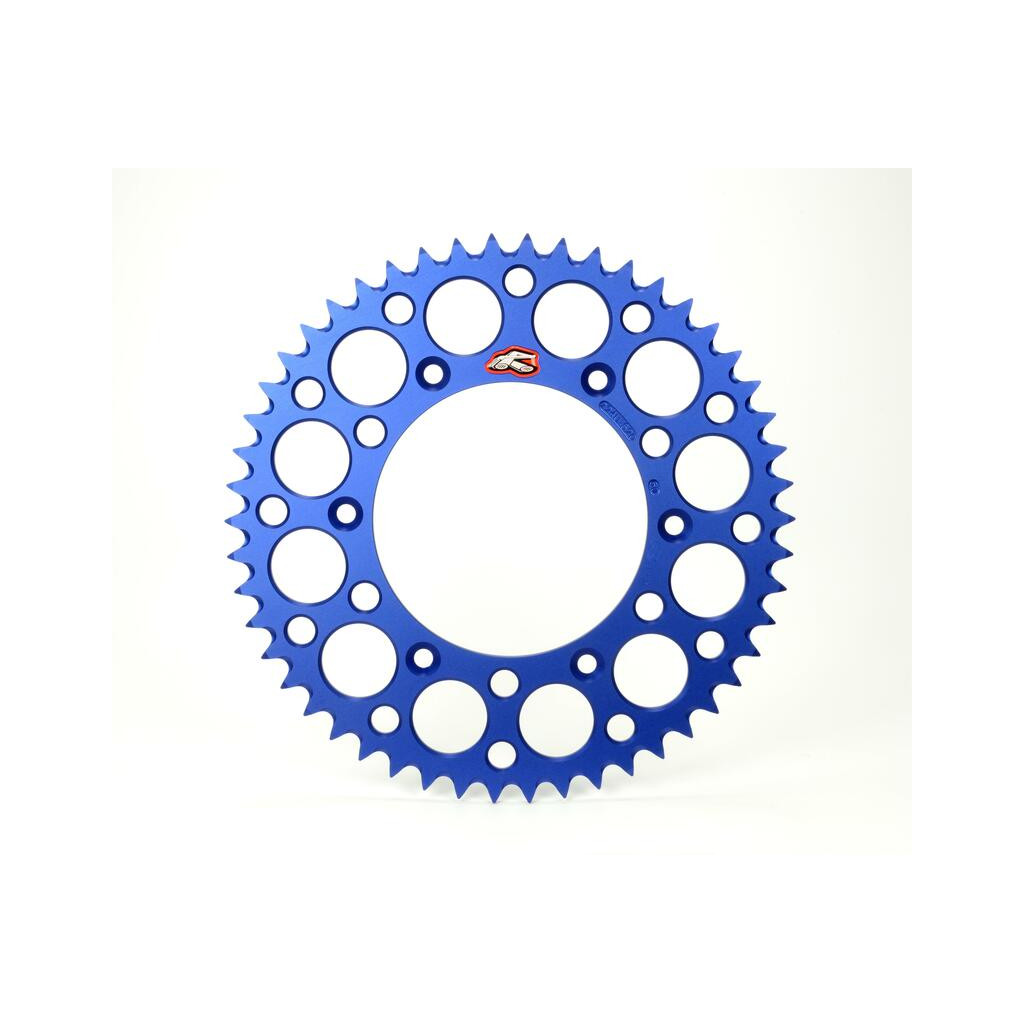 Couronne Renthal Ultralight™ anti boue Usinée avec une grande précision dans un aluminium 7075 T6 très léger et très résistant.Profil dessiné pour les dents qui permet de faciliter l’évacuation de la boue et réduit au maximum les pertes de puissance dûes à la friction entre la chaîne et la couronne. L’anodisation durcit la matière en surface et améliore aussi l’esthétique. Des alésages sont réalisés sur la couronne à des endroits stratégiques afin d’alléger la pièce sans diminuer la résistance. Cette couronne vous apportera un gain en poids, en puissance, en résistance et en longévité. Un atout pour le MX, SX ou l’enduro.