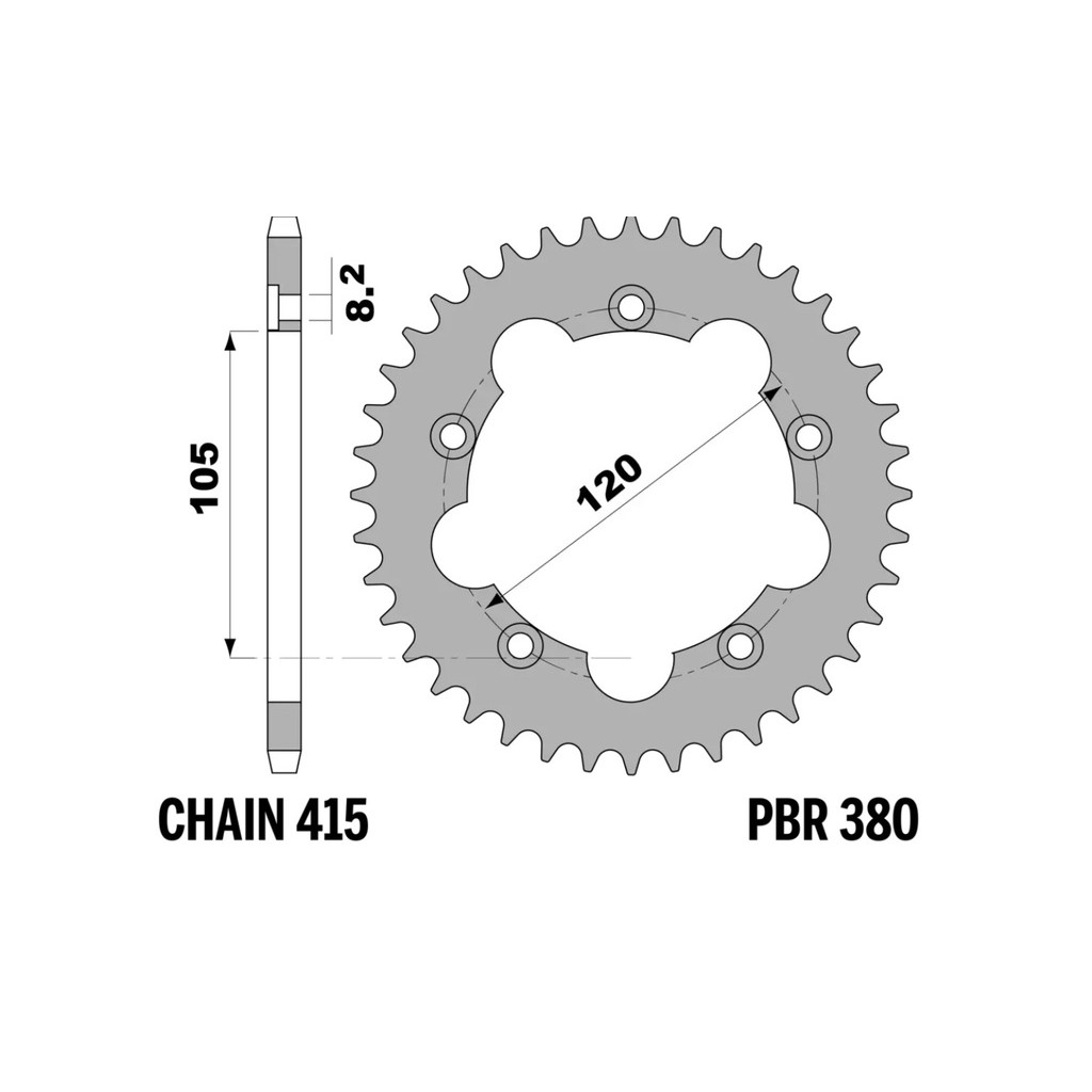 The PBR steel sprocket, Item: 380 40 F, is derived from components we supply as original equipment to leading motorcycle manufacturers. Designed to deliver strength and reliability, it is ideal for riders seeking durability and consistent performance, even in the toughest riding conditions. Manufactured from high-quality steel, this sprocket ensures long-lasting performance and an excellent value-for-money ratio, with no compromise on quality.MAIN FEATURES:Material: High-quality steel, renowned for its strength and durability.Teeth: This sprocket has 40 teeth. Other configurations are available to suit different riding needs.Pitch: Compatible with chains of 415 pitch.Color: Available in black or natural steel finish, blending an attractive aesthetic with corrosion protection.ADVANTAGES:Superior Resistance: Steel construction ensures excellent wear resistance, extending the sprocket’s lifespan.Consistent Performance: Designed to maintain high performance even in extreme conditions, ensuring reliability on both road and off-road terrains.LONGEVITY AND MAINTENANCE:With proper maintenance, these sprockets can achieve a lifespan of over 15,000 km, offering long-term reliability.Note: Ensure the correct tooth configuration and pitch for your motorcycle model for optimal performance.