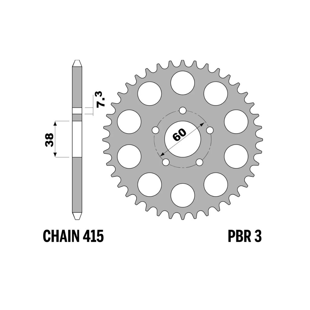 The PBR steel sprocket, Item: 3 32 F, is derived from components we supply as original equipment to leading motorcycle manufacturers. Designed to deliver strength and reliability, it is ideal for riders seeking durability and consistent performance, even in the toughest riding conditions. Manufactured from high-quality steel, this sprocket ensures long-lasting performance and an excellent value-for-money ratio, with no compromise on quality.MAIN FEATURES:Material: High-quality steel, renowned for its strength and durability.Teeth: This sprocket has 32 teeth. Other configurations are available to suit different riding needs.Pitch: Compatible with chains of 415 pitch.Color: Available in black or natural steel finish, blending an attractive aesthetic with corrosion protection.ADVANTAGES:Superior Resistance: Steel construction ensures excellent wear resistance, extending the sprocket’s lifespan.Consistent Performance: Designed to maintain high performance even in extreme conditions, ensuring reliability on both road and off-road terrains.LONGEVITY AND MAINTENANCE:With proper maintenance, these sprockets can achieve a lifespan of over 15,000 km, offering long-term reliability.Note: Ensure the correct tooth configuration and pitch for your motorcycle model for optimal performance.