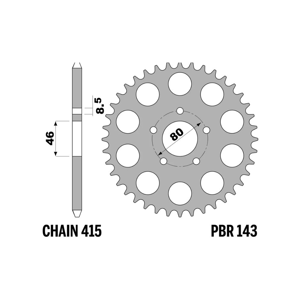The PBR steel sprocket, Item: 143 42 F, is derived from components we supply as original equipment to leading motorcycle manufacturers. Designed to deliver strength and reliability, it is ideal for riders seeking durability and consistent performance, even in the toughest riding conditions. Manufactured from high-quality steel, this sprocket ensures long-lasting performance and an excellent value-for-money ratio, with no compromise on quality.MAIN FEATURES:Material: High-quality steel, renowned for its strength and durability.Teeth: This sprocket has 42 teeth. Other configurations are available to suit different riding needs.Pitch: Compatible with chains of 415 pitch.Color: Available in black or natural steel finish, blending an attractive aesthetic with corrosion protection.ADVANTAGES:Superior Resistance: Steel construction ensures excellent wear resistance, extending the sprocket’s lifespan.Consistent Performance: Designed to maintain high performance even in extreme conditions, ensuring reliability on both road and off-road terrains.LONGEVITY AND MAINTENANCE:With proper maintenance, these sprockets can achieve a lifespan of over 15,000 km, offering long-term reliability.Note: Ensure the correct tooth configuration and pitch for your motorcycle model for optimal performance.