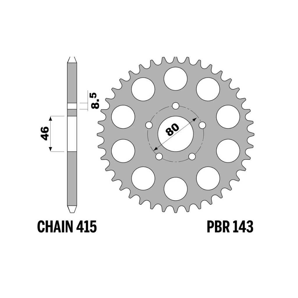 The PBR steel sprocket, Item: 143 44 F, is derived from components we supply as original equipment to leading motorcycle manufacturers. Designed to deliver strength and reliability, it is ideal for riders seeking durability and consistent performance, even in the toughest riding conditions. Manufactured from high-quality steel, this sprocket ensures long-lasting performance and an excellent value-for-money ratio, with no compromise on quality.MAIN FEATURES:Material: High-quality steel, renowned for its strength and durability.Teeth: This sprocket has 44 teeth. Other configurations are available to suit different riding needs.Pitch: Compatible with chains of 415 pitch.Color: Available in black or natural steel finish, blending an attractive aesthetic with corrosion protection.ADVANTAGES:Superior Resistance: Steel construction ensures excellent wear resistance, extending the sprocket’s lifespan.Consistent Performance: Designed to maintain high performance even in extreme conditions, ensuring reliability on both road and off-road terrains.LONGEVITY AND MAINTENANCE:With proper maintenance, these sprockets can achieve a lifespan of over 15,000 km, offering long-term reliability.Note: Ensure the correct tooth configuration and pitch for your motorcycle model for optimal performance.
