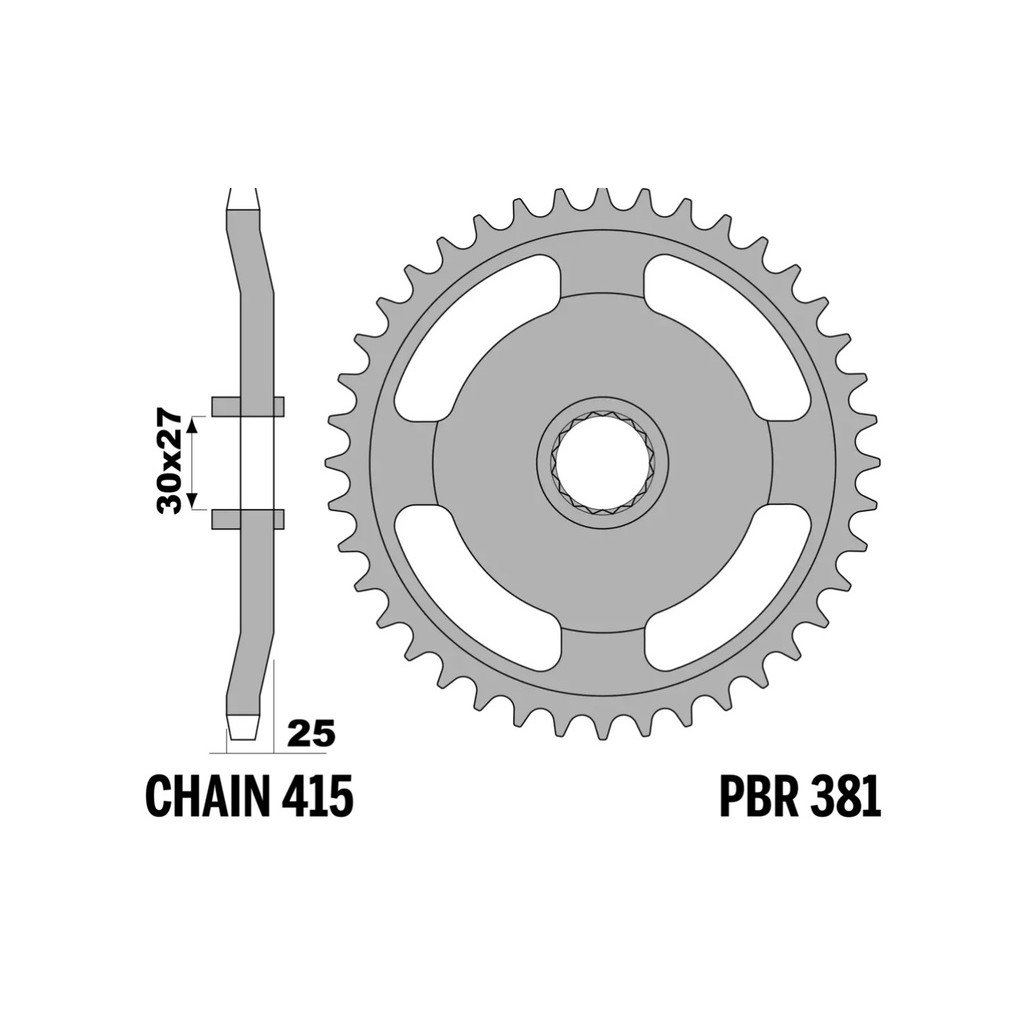 The PBR steel sprocket, Item: 381 37 F, is derived from components we supply as original equipment to leading motorcycle manufacturers. Designed to deliver strength and reliability, it is ideal for riders seeking durability and consistent performance, even in the toughest riding conditions. Manufactured from high-quality steel, this sprocket ensures long-lasting performance and an excellent value-for-money ratio, with no compromise on quality.MAIN FEATURES:Material: High-quality steel, renowned for its strength and durability.Teeth: This sprocket has 37 teeth. Other configurations are available to suit different riding needs.Pitch: Compatible with chains of 415 pitch.Color: Available in black or natural steel finish, blending an attractive aesthetic with corrosion protection.ADVANTAGES:Superior Resistance: Steel construction ensures excellent wear resistance, extending the sprocket’s lifespan.Consistent Performance: Designed to maintain high performance even in extreme conditions, ensuring reliability on both road and off-road terrains.LONGEVITY AND MAINTENANCE:With proper maintenance, these sprockets can achieve a lifespan of over 15,000 km, offering long-term reliability.Note: Ensure the correct tooth configuration and pitch for your motorcycle model for optimal performance.