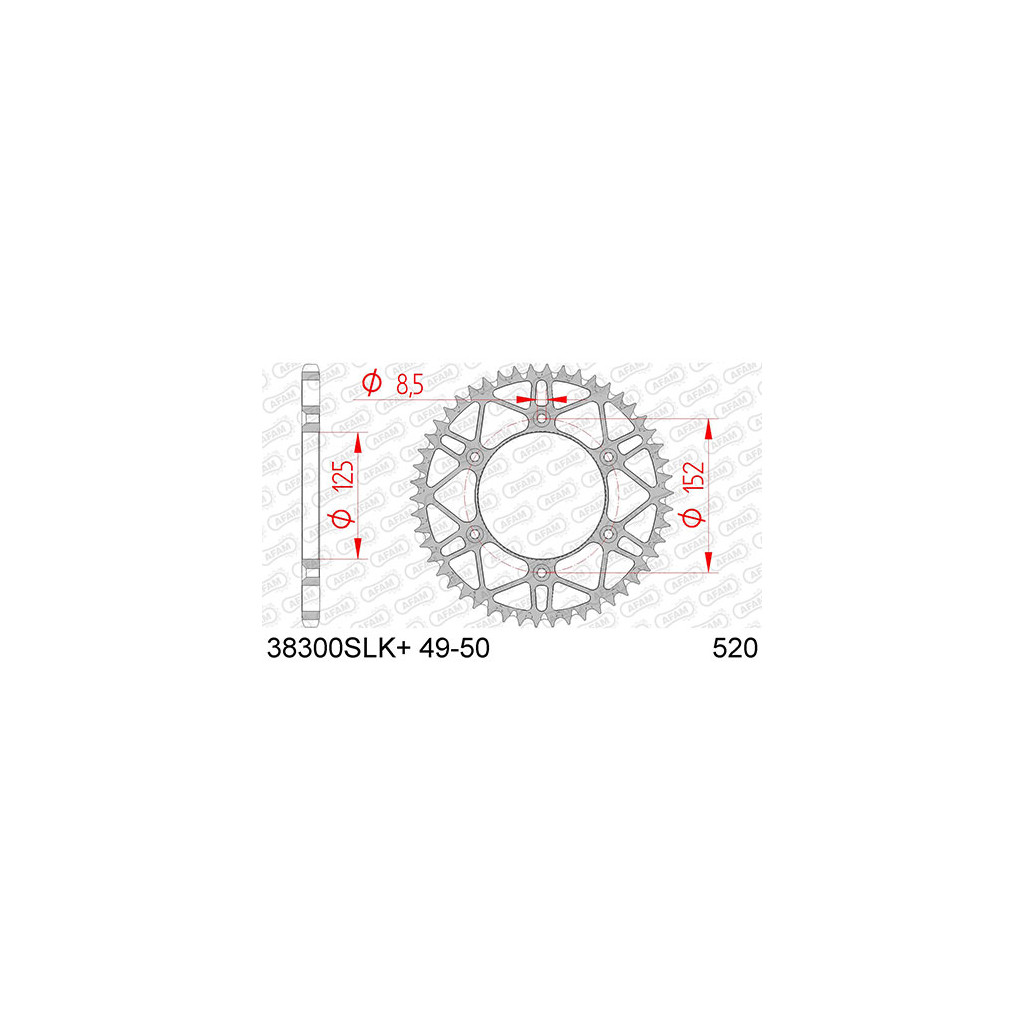Couronne AFAM 50 dents acier ultra-light anti-boue pas 520 type 38300