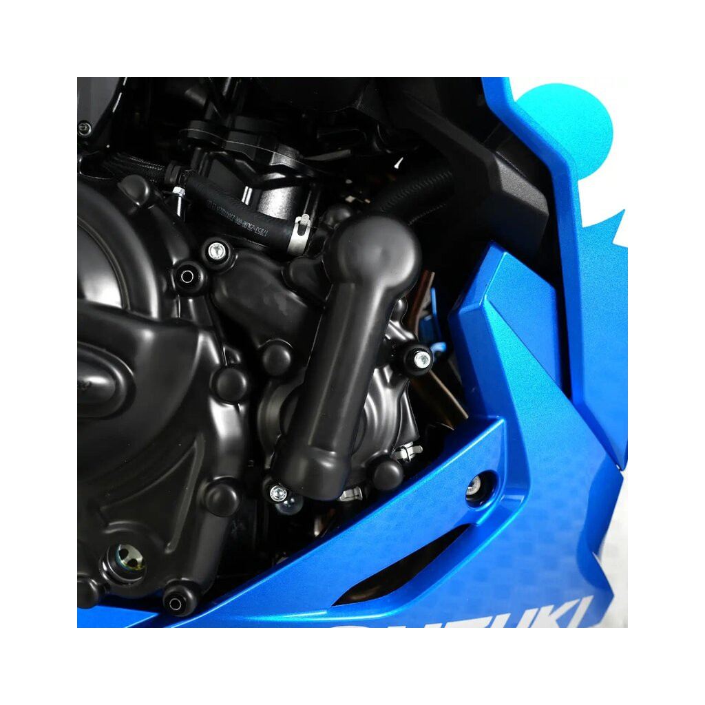 This Right hand side R&G Engine Case Cover fits the Suzuki V-Strom 800 DE / RE '23-, GSX-8R '24-/GSX-8T '25-, GSX-8TT ‘25- & GSX-8S '23- (RHS Water Pump), protecting the exposed Water Pump from damage in the event of a crash, slide or drop.