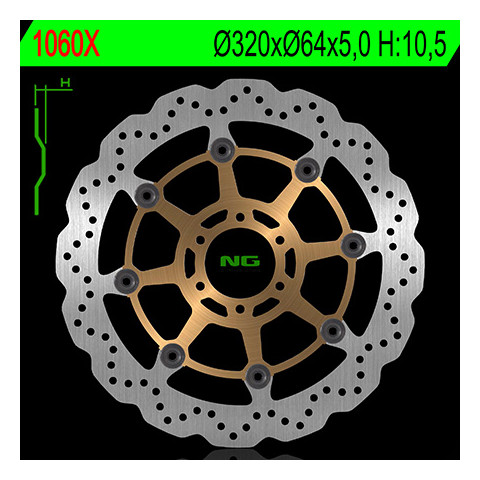 Extérieur: 320Intérieur : 64Epaisseur: 5,0Nombre de trous : 6Trous : 8,5