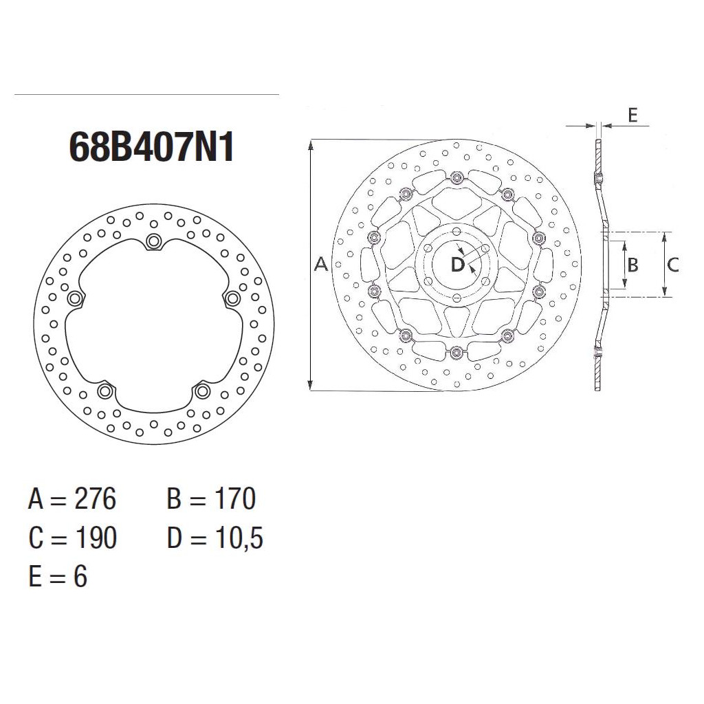 Disque de frein arrière Brembo Serie Oro rond fixe type 68B407N1