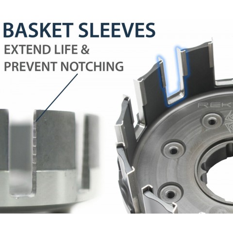 Unlock more power without compromising reliability! TorqDrive provides more disks in less space, allowing us to add up to 6 additional friction disks to the clutch pack over stock. More frictions = more torque capacity and less slip thus unlocking the full power of your engine without the need to add stiffer pressure plate springs to combat clutch slip. TorqDrive® clutch pack delivers higher torque capacity and increased power transferEliminates clutch fade in extreme conditionsImproved durability and reliabilitySmoother shiftingMore consistent clutch lever feelRekluse sleeves eliminate basket wear and notching