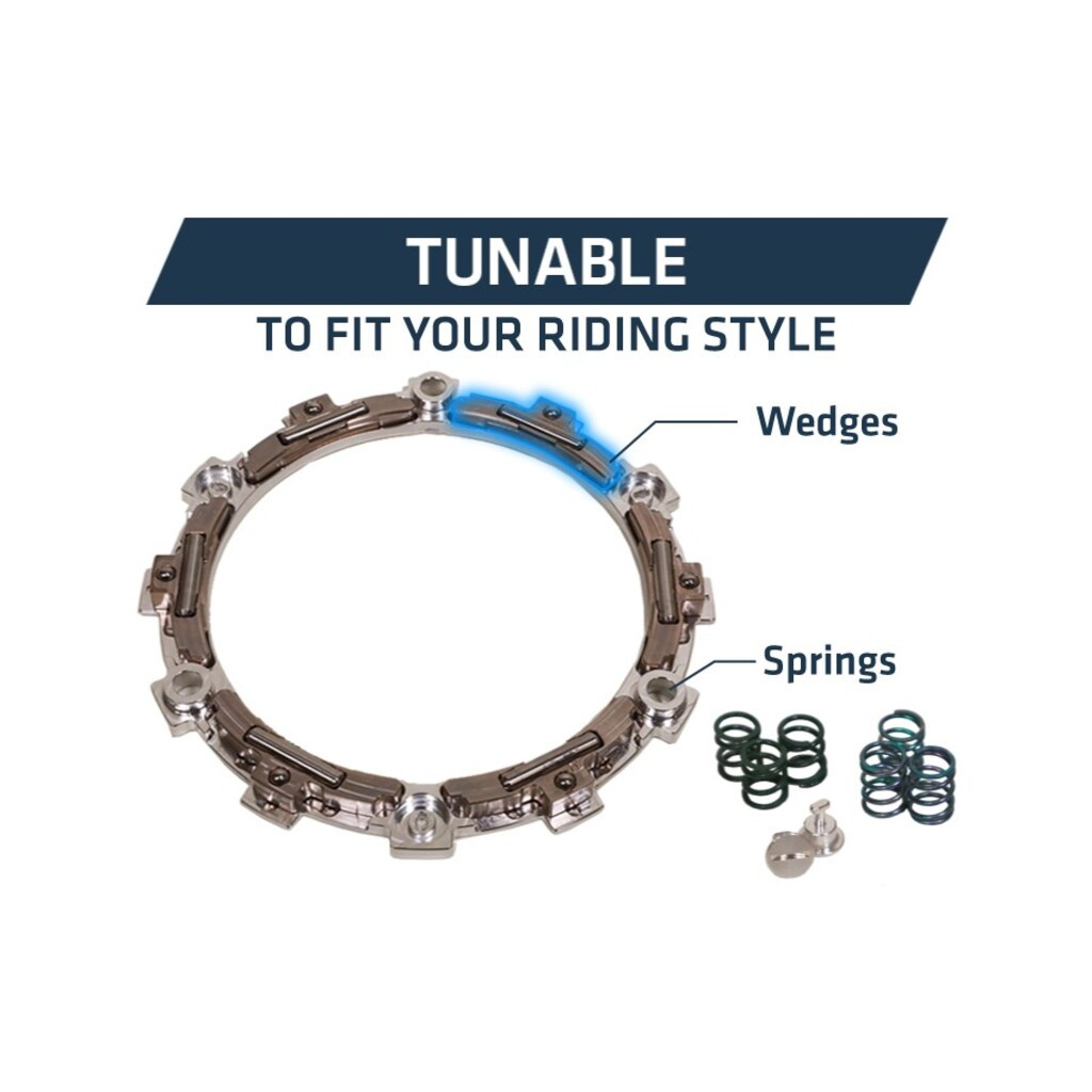 RadiusCX est un ensemble complet de fonctionnalités d'embrayage automatique, de puissance améliorée et de durabilité accrue. Les kits RadiusCX comprennent le disque d'embrayage automatique EXP 4.0 de nouvelle génération de Rekluse, le moyeu intérieur et le plateau de pression en aluminium, la technologie de disque de friction TorqDrive, ainsi qu'un couvercle d'embrayage.