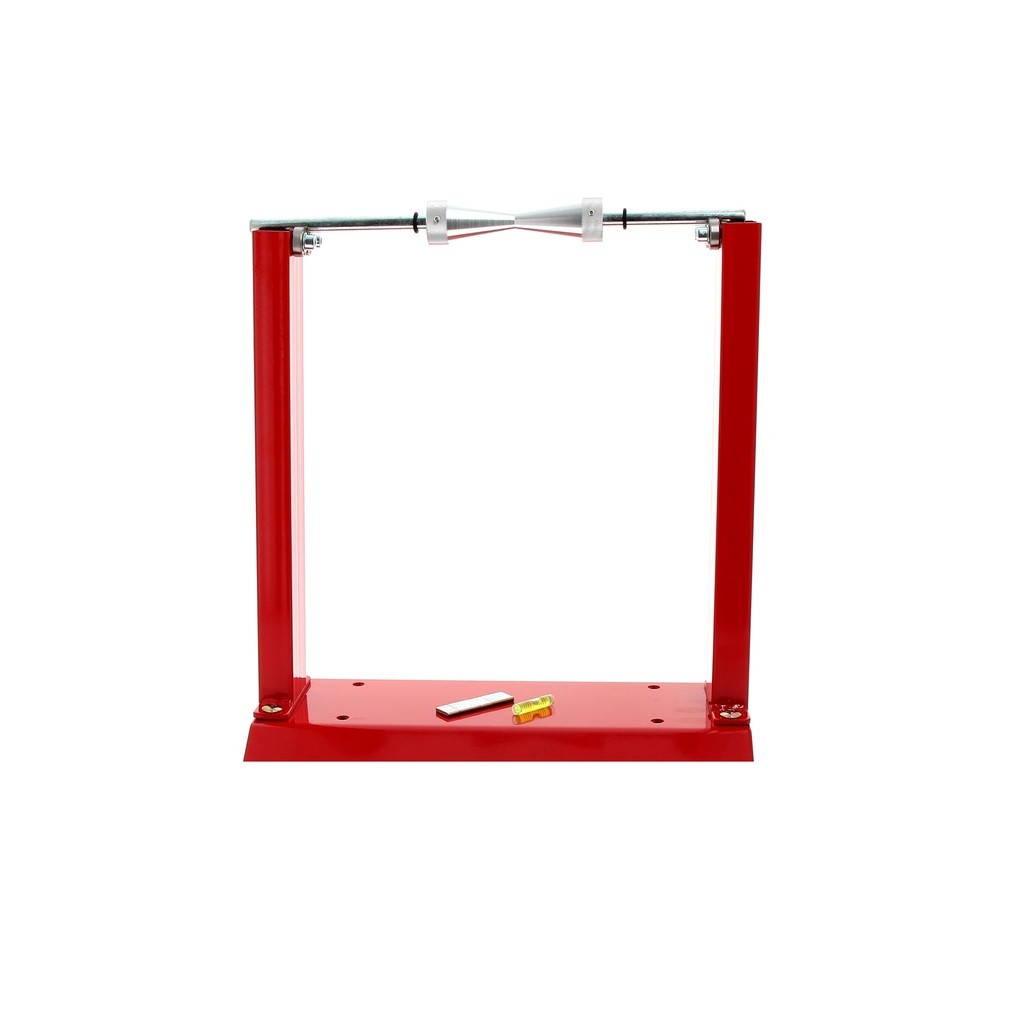 Equilibreuse statique équipée de pieds réglables et compatible avec les roues jusqu'à 21". Axe Ø12mm et cone Ø12 à 34mmRouge