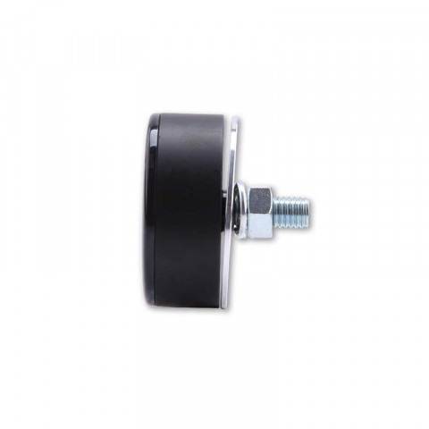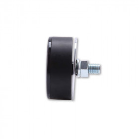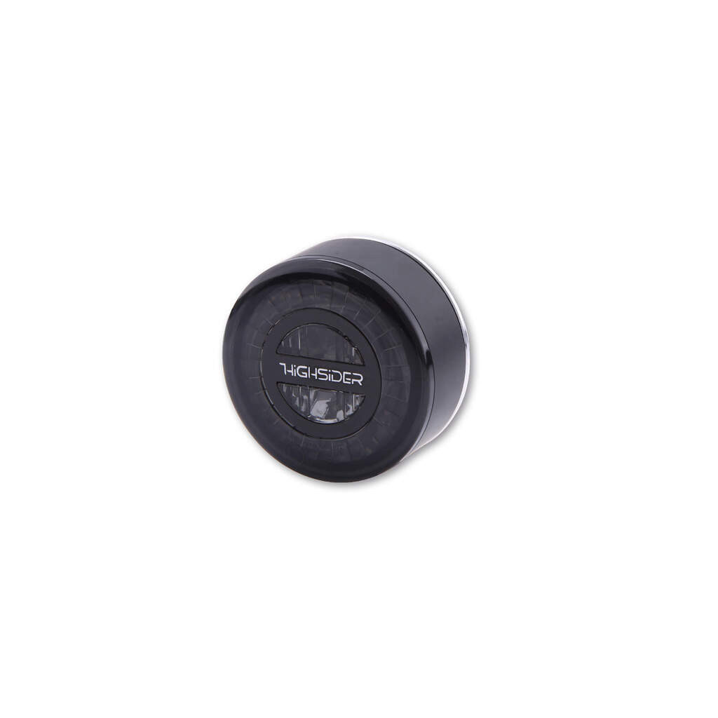 Feu arrière LED HIGHSIDER Rocket - à monter ou à fixer - avec anneau en aluminium noir et verre teinté. Homologué pour l'arrière.