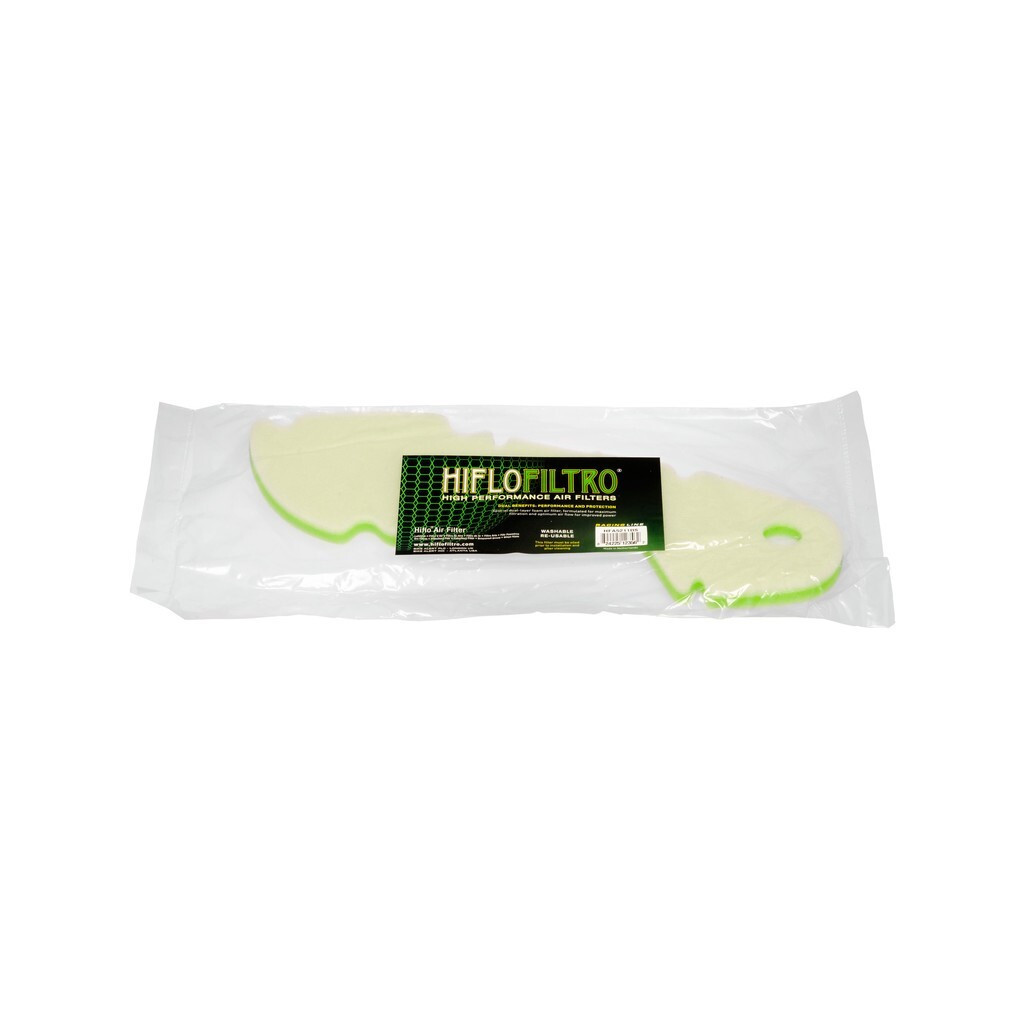 Dual-Stage Foam Air Filters for motocross, enduro, ATV, and scooter Constructed from two layers of open pore foam to provide excellent airflow and maximum filtration. The coarse outer layer traps larger particles of dirt and water, keeping the fine inner layer free to trap fine dust particles. Hiflofiltro dual-stage foam filters are designed to be cleaned and re-used over and over again. The two foam layers are flame laminated together to provide a durable, permanent bond. The filter is constructed from pieces of dual-layer foam bonded together, using a specially formed adhesive that isunaffected by repeat cleaning and oiling cycles. Developed and made in the Netherlands.
