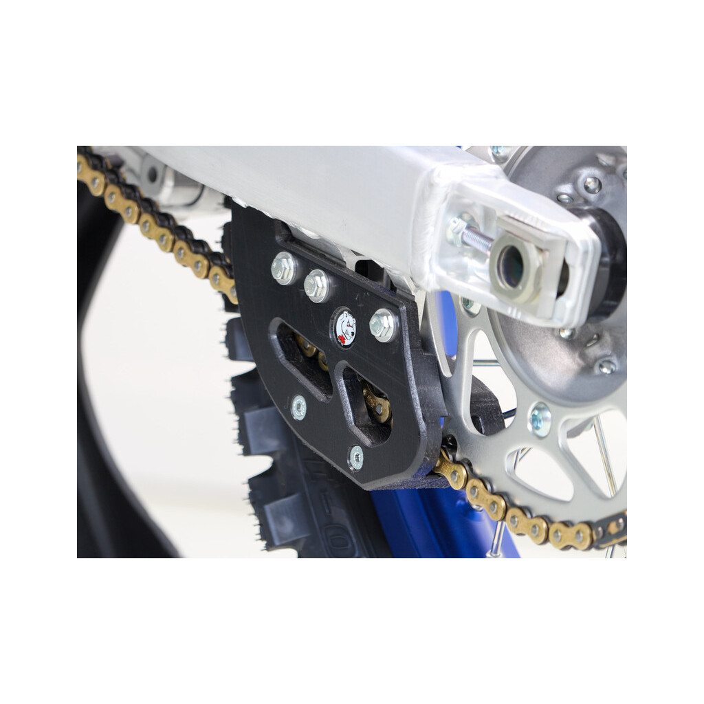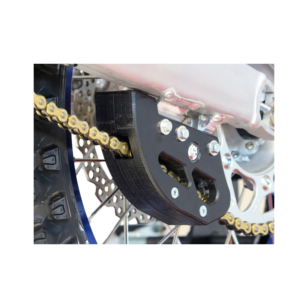 Guide chaîne renforcé en plastique UHMW - 0.5Kg Avec une haute résistance à la friction, ce nouveau guide chaîne est conçu pour le MX comme l’enduro et offrira une protection supérieure et une meilleure longévité ! Son montage se fait sans déposer la chaîne, ce qui facilite l’entretien et le remplacement.