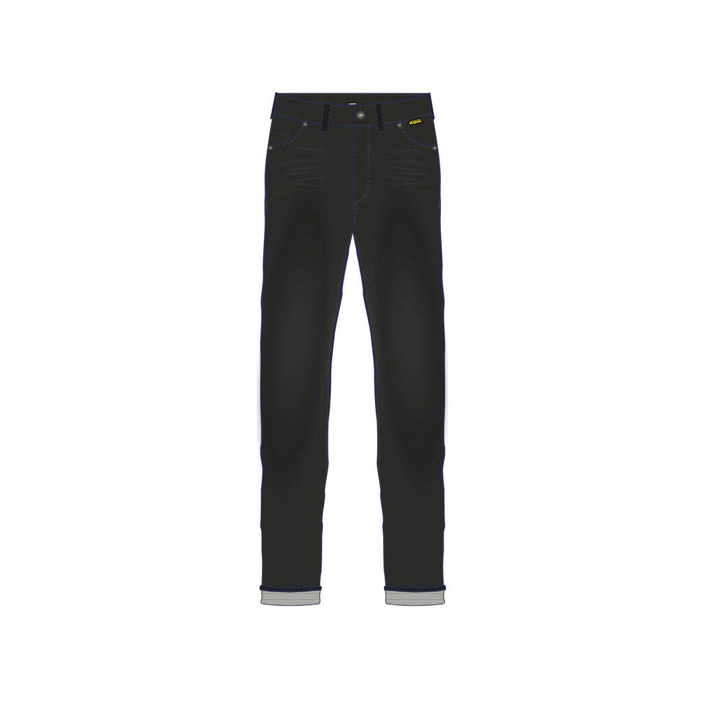 Ce jean 5 poches fabriqué avec du Kevlar™ comporte une poche à monnaie, une fermeture éclair et un effet used sur les cuisses. En outre, la coupe tapered (fuseau) de la jambe offre un ajustement près du corps. Taillé dans du denim stretch, le pantalon est doublé en fibre DuPont™ Kevlar® dans les zones d’impact principales telles que l'extérieur des jambes, l’entrecuisse et les genoux. Homologué CE de Niveau AA, il offre une protection supplémentaire CE Niveau 1 genoux et une poche pour la protection hanches. L’intérieur du pantalon intègre le nouveau système de protection RST Infinite Adjustment Armour System, développé pour améliorer l'ajustement des protections de genoux en fonctions des différentes tailles de jambes.Les protections CE de Niveau 1 se glissent dans des pochettes en coton et sont ensuite solidement fixées dans les poches de protections genoux par des scratchs. Les protections précisément ajustées améliorent le confort et la protection du pilote. Des repères gradués sont imprimés à l’intérieur du jean pour un réglage simple et précis. Disponible dans de multiples coloris et longueurs de jambe.Homologation CE, AProtection Protection genou : CE Niveau 1 Protection hanche : Poche uniquement Fabrication Matière principale externe : Denim et fibre DuPont™ Kevlar® Doublure intérieure : Doublure fixe en filet / coton Renforcement : Fibre DuPont™ Kevlar® Fermetures zippées : Fermetures éclair RST Caractéristiques Poches extérieures : 5 Système de protection réglable à l’infini : Oui Patch arrière orné de la marque RST : Oui Passants de ceinture : Oui Détail couture contrasté : Oui