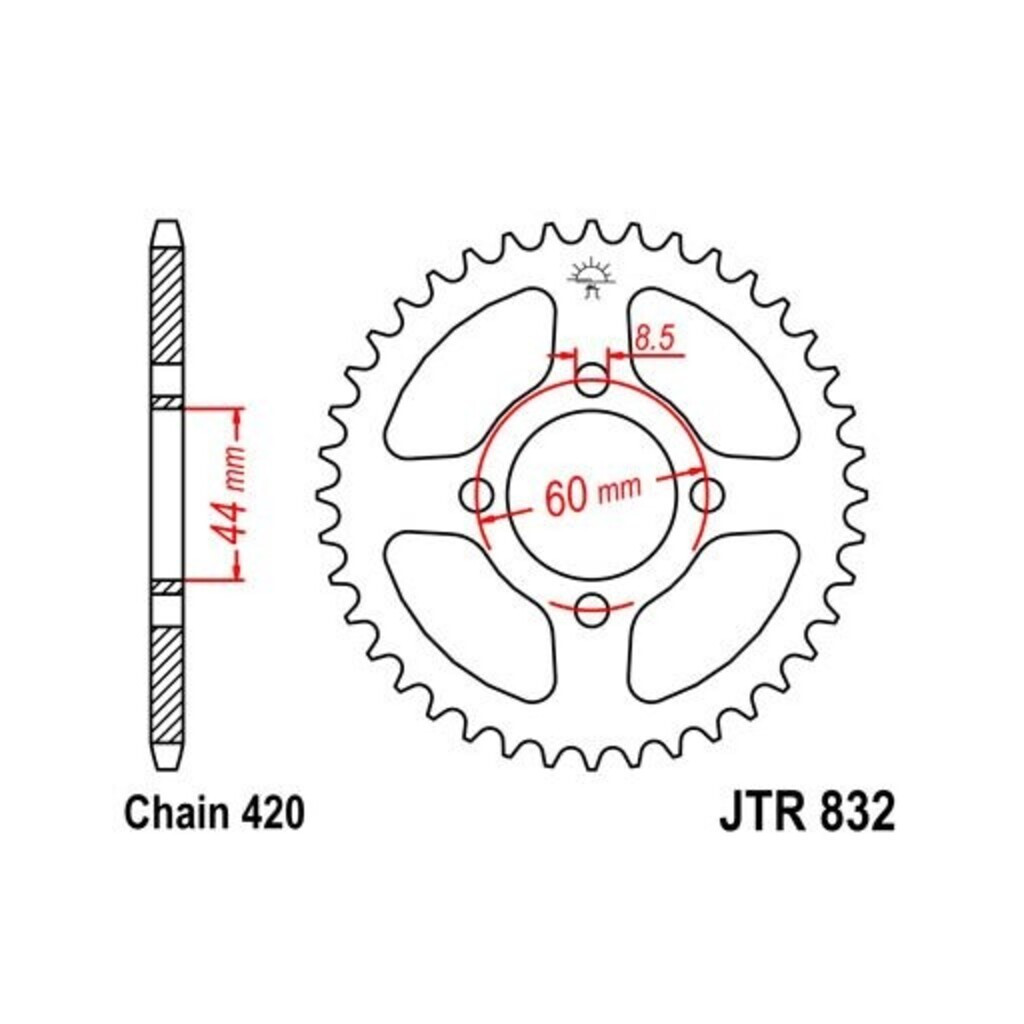chaîne JT 420HDR renforcée, un pignon avant standard en acier et une