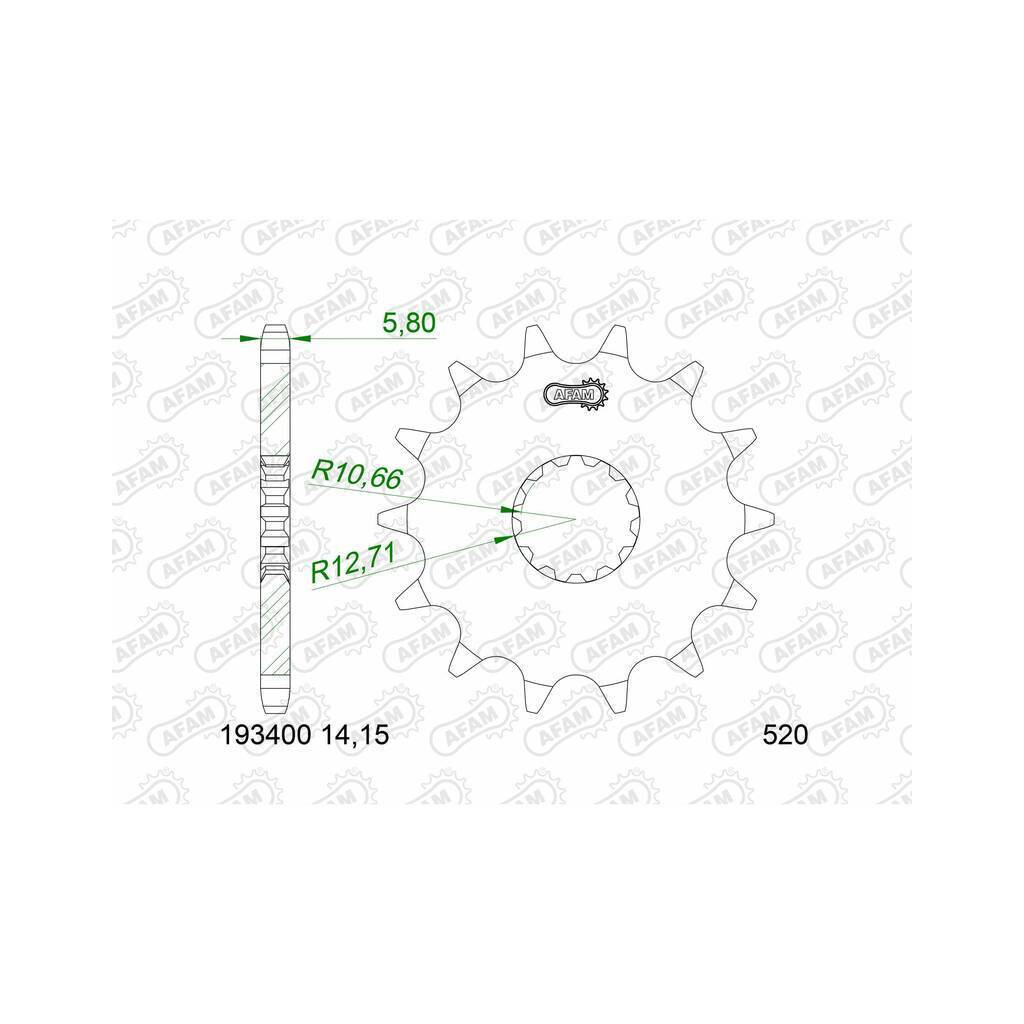 Le pignon arrière standard en acier robuste d'AFAM offre une grande résistance et une transmission de puissance précise.