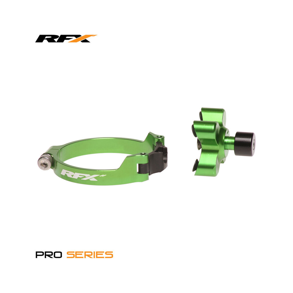 Commande de lancement CNC série Pro Les pièces CNC pour matériel RFX série Pro sont conçues, testées et fabriquées pour les compétiteurs acharnés. Forts de nos 30 années d'expérience en matière de course et d'ingénierie, nous avons mélangé des conceptions de qualité, des matériaux supérieurs et des processus de fabrication de précision pour créer des pièces de course d'origine accessibles à tous. Les commandes de lancement RFX vous permettent d'abaisser et de verrouiller la suspension avant afin d'empêcher la roue avant de se soulever lors d'une forte accélération à partir de la grille de départ. Usiné par CNC à partir de billettes d'aluminium et doté d'une conception articulée pour éliminer le retrait du pied de fourche lors de l'installation, d'un loquet en acier pour réduire l'usure et d'un plongeur à quatre boulons pour résister aux dommages causés par les pierres. Caractéristiques Construction CNC en billettes d'aluminium de qualité aérospatiale Système de plongeur à quatre boulons Installation facile grâce à la conception articulée Anodisation en couleur pour un look d'usine Logo RFX Hardware gravé au laser Testé par les meilleures écuries de course britanniques