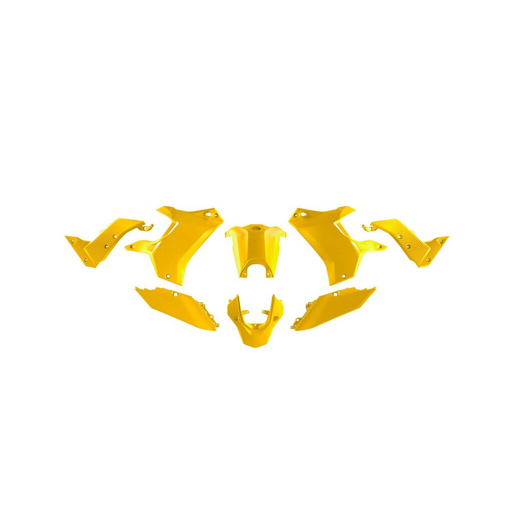 Kit plastique redessiné en Polypropylène flexible, anti-rayures ainsi que brillant et respectueux de l'environnement donnera à cette moto d'aventure emblématique :