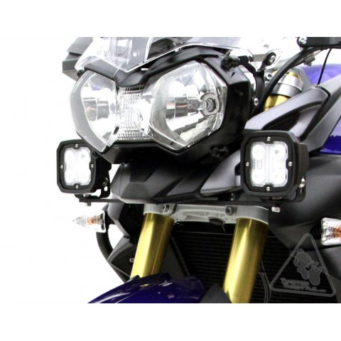 Découpé au laser dans de l'acier et couvert d'un revêtement noir, ce support léger est à la fois solide et attrayant. Le kit permet d'installer n'importe quel éclairage LED Denali sur votre moto.