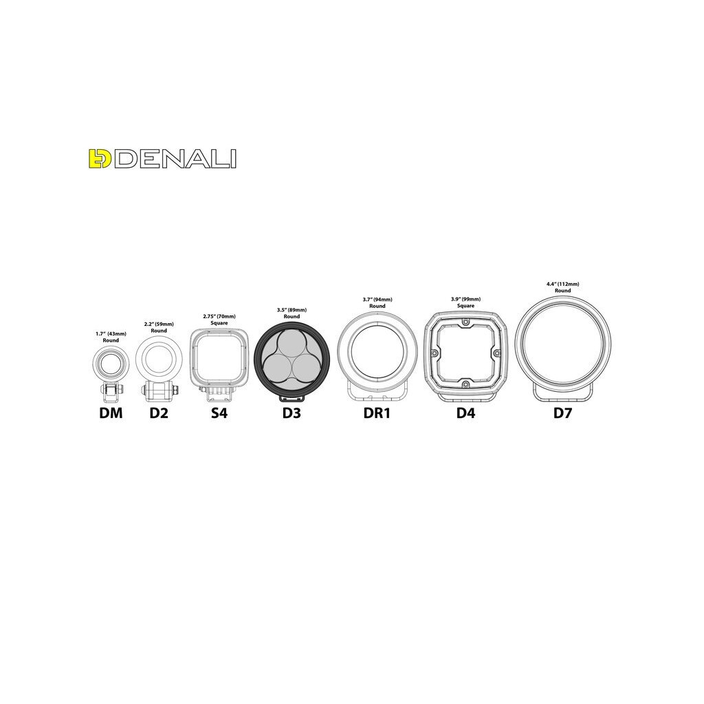 Les nouveaux feux D3 LED sont basés sur une décennie d'innovation DENALI pour offrir le feu de route le plus performant de 36 watts sur le marché. L'éclairage de conduite D3 dispose de notre système de faisceau TriOptic™ signature qui comprend un spot et une lentille de conduite hybride avec chaque pod de lumière. Contrairement aux feux TriOptic™ précédents, le feu de route hybride D3 est conforme aux normes ECE et SAE pour offrir un impressionnant feu de route légal en Amérique du Nord et dans les pays de l'Union européenne. Mais qu'en est-il si vous n'êtes pas concerné par la précision légale de la rue et que vous voulez juste de la démesure hors route ? Nous vous couvrons également ! La lentille spot D3 a été conçue pour une distance de faisceau maximale de plus de 1 900 pieds à 1 lux (par paire). Aucune autre lampe de 36 watts ne s'en approche. Le faisceau est si impressionnant qu'il surpasse les lampes des concurrents les plus performants qui sont deux fois plus grandes. le D3 est également disponible en version antibrouillard certifiée SAE et ECE pour les conducteurs à la recherche d'un véritable faisceau antibrouillard homologué, super large et doté d'une " coupure " horizontale nette