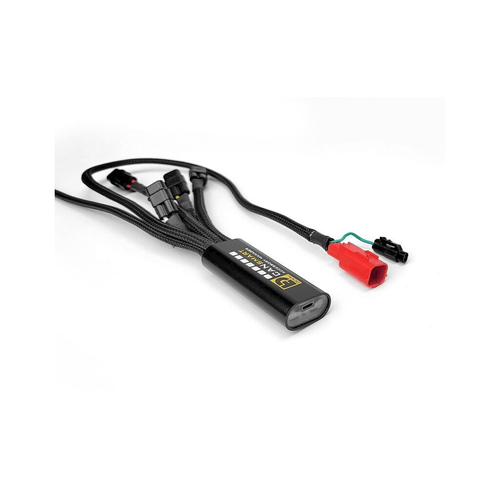 Exploitez la flexibilité et l'intelligence du système électrique à bus CAN de votre moto pour faciliter considérablement l'installation d'accessoires avec le nouveau contrôleur DENALI CANsmart™ GEN II amélioré. Le DENALI CANsmart™ Controller offre une installation plug-n-play et un contrôle intégré de jusqu'à quatre accessoires pour permettre des douzaines de paramètres personnalisables qui peuvent être contrôlés directement à partir du logiciel CANsmart™ Accessory Manager. Les quatre circuits du CANsmart sont préprogrammés pour se connecter et contrôler indépendamment deux jeux de feux DENALI, un klaxon SoundBomb et le feu stop auxiliaire B6. Gen II - Plus de fonctions, plus de puissance, plus de polyvalenceContrairement au CANsmart Gen I, les quatre circuits du Gen II peuvent fournir une puissance continue de 10 ampères et chaque circuit peut être configuré pour faire fonctionner n'importe quel type d'accessoire. La puissance maximale absorbée par l'ensemble de l'unité reste de 30 ampères continus. Le Gen II propose également deux nouveaux réglages pour la lumière auxiliaire. Vous pouvez désormais moduler vos feux auxiliaires pour une meilleure visibilité et régler vos feux latéraux gauche et droit pour qu'ils s'éteignent indépendamment lorsque vous activez le clignotant correspondant.