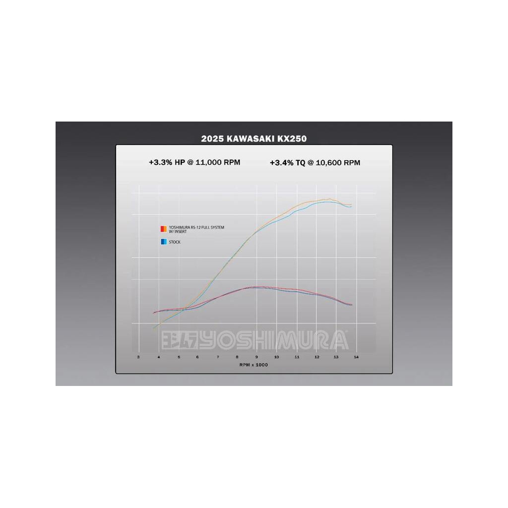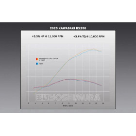 La dernière KX250F dispose d'un nouveau châssis et d'un nouveau moteur. Il était donc temps de travailler pour voir ce qui pouvait être fait pour améliorer les performances de la nouvelle KX. Lors du développement, la nouvelle 250 a très bien réagi au RS-12 : +3,3 % de puissance à 11 000 tr/min et jusqu'à +3,4 % de couple à 10 600 tr/min. Cela donne à la KX250F 2025 plus de puissance en haut et une meilleure connectivité en bas et au milieu de la plage de puissance.