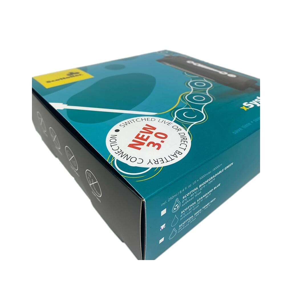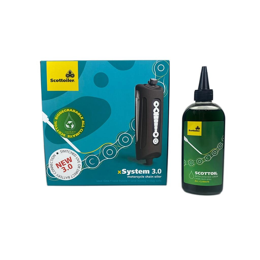 Graisseur de chaîne électronique SCOTTOILER xSystem 3.0 + lubrifiant tout climat vert biodégradable 250ml