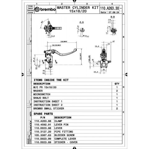 Maître-cylindre de frein BREMBO UPGRADE Pr15 RCS levier long repliable