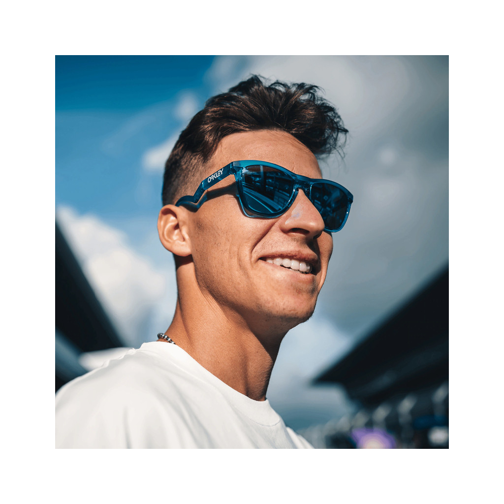 Ode aux origines de Fabio Quartararo, qui a grandi à Nice, les Fabio Quartararo Signature Series Frogskins™ Hybrid évoquent la mer en perpétuel changement. La monture bleu translucide et les branches bleu clair représentent la liberté grisante, la puissance et l’imprévisibilité de l’océan – calme un jour, tumultueux le lendemain – tandis que le verre gravé du #20 de Fabio Quartararo ajoute des détails uniques à cette monture lifestyle.La forme classique des Frogskins associée au design gâchette des branches des emblématiques Razor Blades d’Oakley®. La monture est un mélange de proportions incroyables réalisées à l’aide du matériau BiO-Matter® d’origine végétale et de ruptures de couleur uniques pour ne pas passer inaperçu. Les plaquettes de nez en Unobtainium® vous garantissent un bon maintien et le logo Oakley® Factory Pilot perpétue la tradition.Les Fabio Quartararo Signature Series Frogskins™ Hybrid sont livrées avec une housse et un bandeau de boîte « El Diablo ».