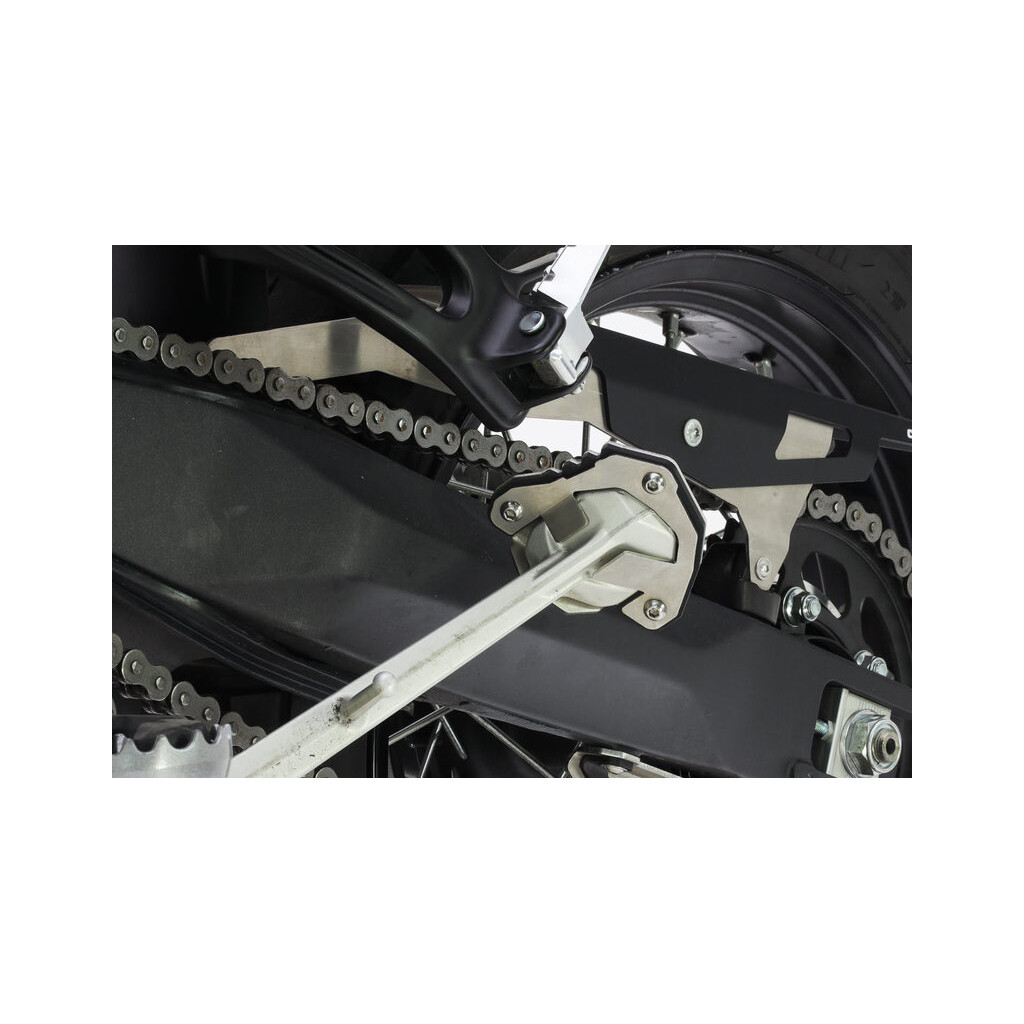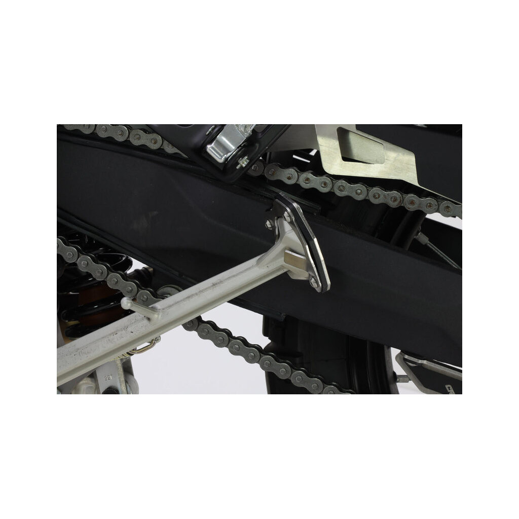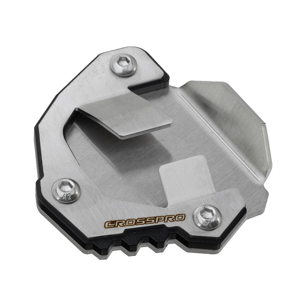 La combinaison de l'acier inoxydable et de l'aluminium augmente la surface d'appui de la moto. Donne plus de stabilité sur différents types de terrains lors de l'utilisation de la béquille Facile à installer