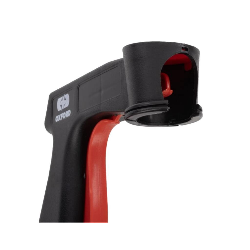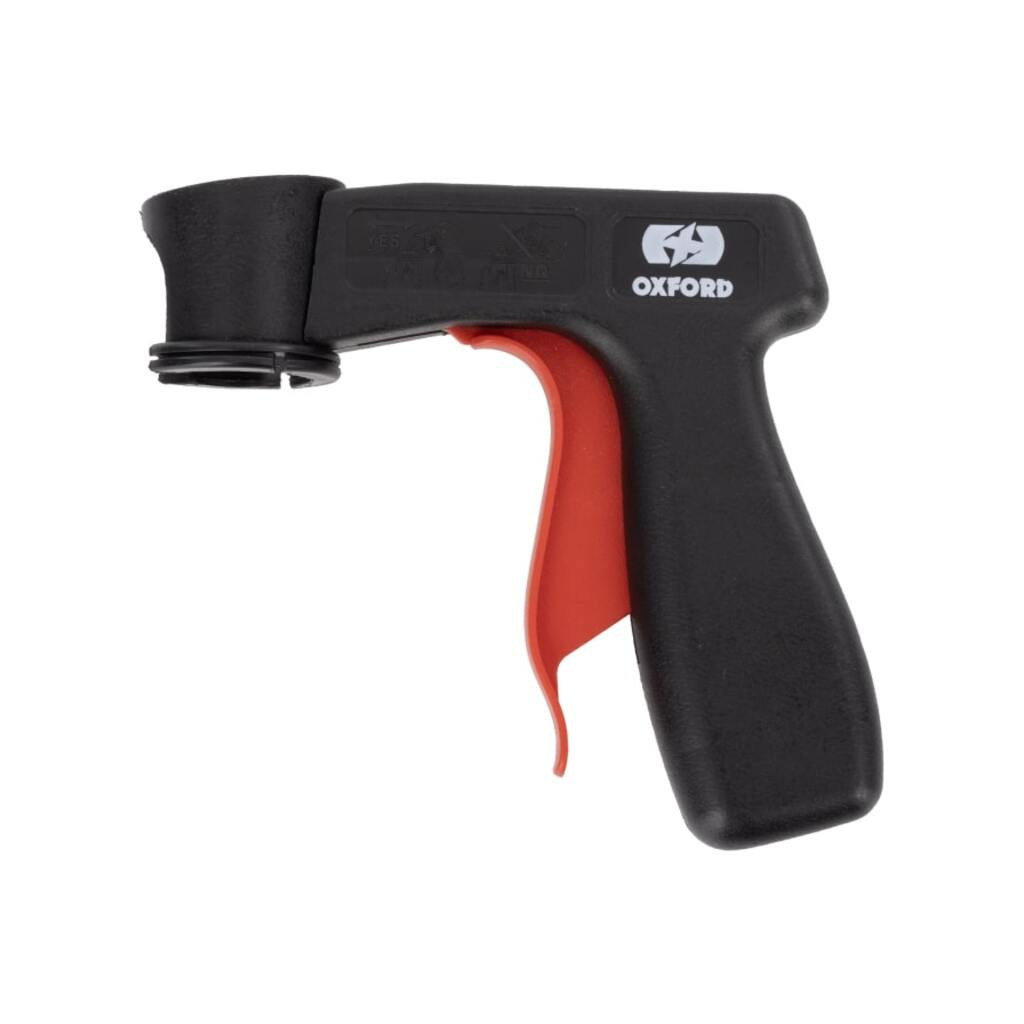 Tenez la gâchette en position horizontale.Avec l’autre main, maintenez l’aérosol avec la buse orientée à l’opposé de la gâchette.Insérez l’ouverture de la gâchette autour du col de la bombe en veillant à bien entourer la buse de pulvérisation.Une fois fixé, dirigez le déclencheur vers la zone souhaitée et appuyez sur la gâchette.Pour retirer la gâchette, tirez horizontalement pour la séparer de la bombe.