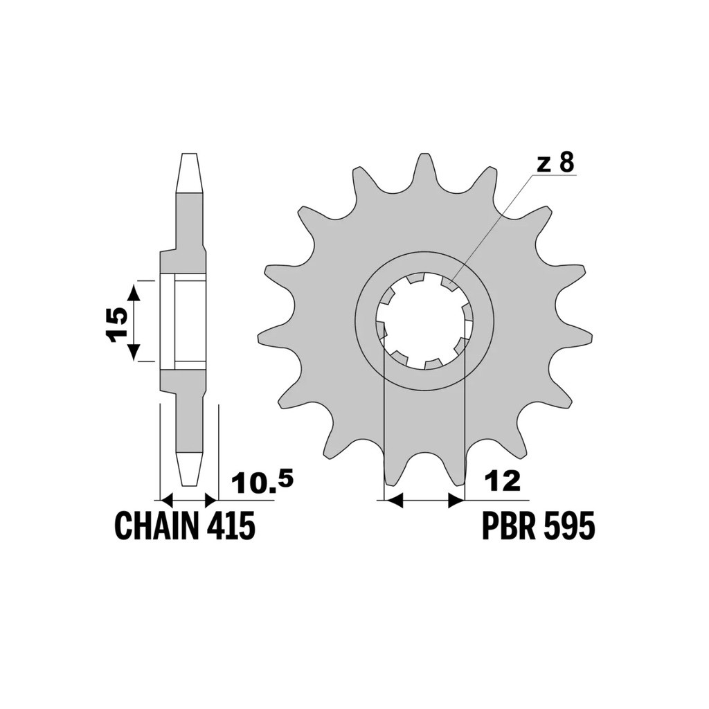 MAIN FEATURES:Material: High-quality steel, renowned for its strength and durability.Teeth: Configurations are available to suit various riding requirements.Pitch: Compatible with chains of 415 pitch.Color: Available in natural steel finish, combining a functional aesthetic with corrosion protection.ADVANTAGES:Strength and Durability: Steel construction ensures a long lifespan and superior wear resistance, even in extreme conditions.Reliable Performance: Designed for high-level performance, this sprocket delivers consistent and reliable results on both road and off-road terrains.LONGEVITY AND MAINTENANCE:Extended Reliability: With proper maintenance, this sprocket offers a long lifespan, reducing the need for frequent replacements.Note: Ensure the correct tooth configuration and pitch for your motorcycle model to guarantee optimal performance.