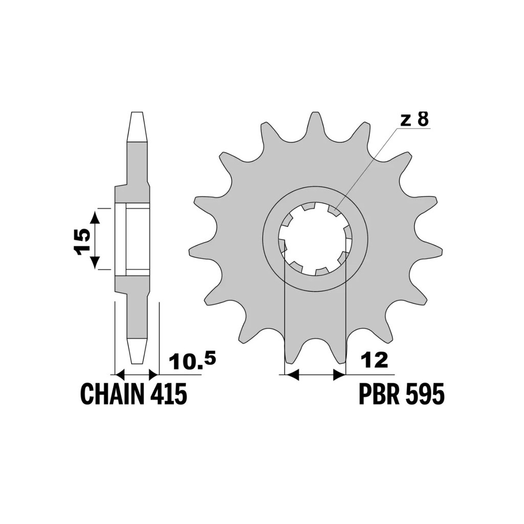 MAIN FEATURES:Material: High-quality steel, renowned for its strength and durability.Teeth: Configurations are available to suit various riding requirements.Pitch: Compatible with chains of 415 pitch.Color: Available in natural steel finish, combining a functional aesthetic with corrosion protection.ADVANTAGES:Strength and Durability: Steel construction ensures a long lifespan and superior wear resistance, even in extreme conditions.Reliable Performance: Designed for high-level performance, this sprocket delivers consistent and reliable results on both road and off-road terrains.LONGEVITY AND MAINTENANCE:Extended Reliability: With proper maintenance, this sprocket offers a long lifespan, reducing the need for frequent replacements.Note: Ensure the correct tooth configuration and pitch for your motorcycle model to guarantee optimal performance.
