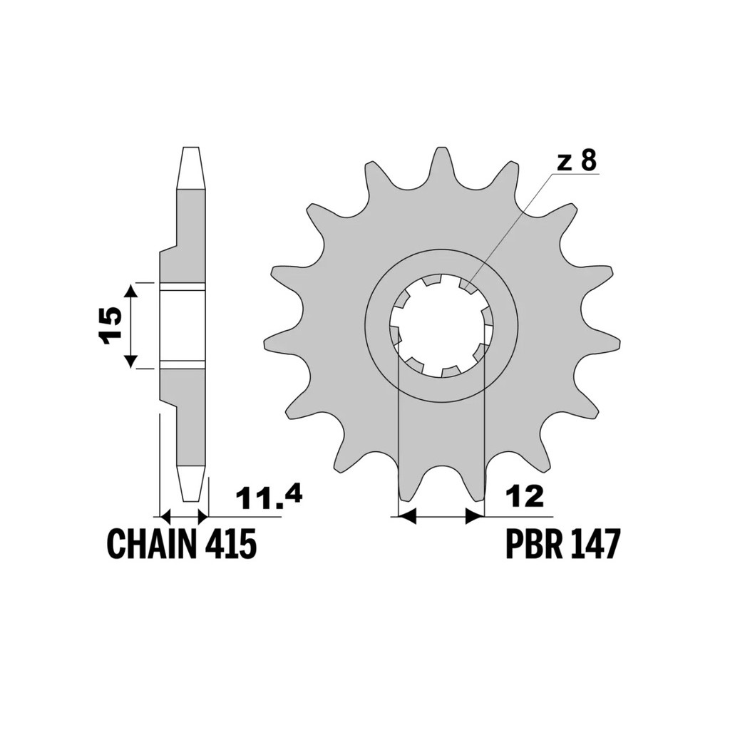 MAIN FEATURES:Material: High-quality steel, renowned for its strength and durability.Teeth: Configurations are available to suit various riding requirements.Pitch: Compatible with chains of 415 pitch.Color: Available in natural steel finish, combining a functional aesthetic with corrosion protection.ADVANTAGES:Strength and Durability: Steel construction ensures a long lifespan and superior wear resistance, even in extreme conditions.Reliable Performance: Designed for high-level performance, this sprocket delivers consistent and reliable results on both road and off-road terrains.LONGEVITY AND MAINTENANCE:Extended Reliability: With proper maintenance, this sprocket offers a long lifespan, reducing the need for frequent replacements.Note: Ensure the correct tooth configuration and pitch for your motorcycle model to guarantee optimal performance.