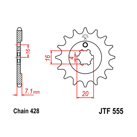 Pignon JT SPROCKETS 13 dents acier pas 428 type 555 Kawasaki