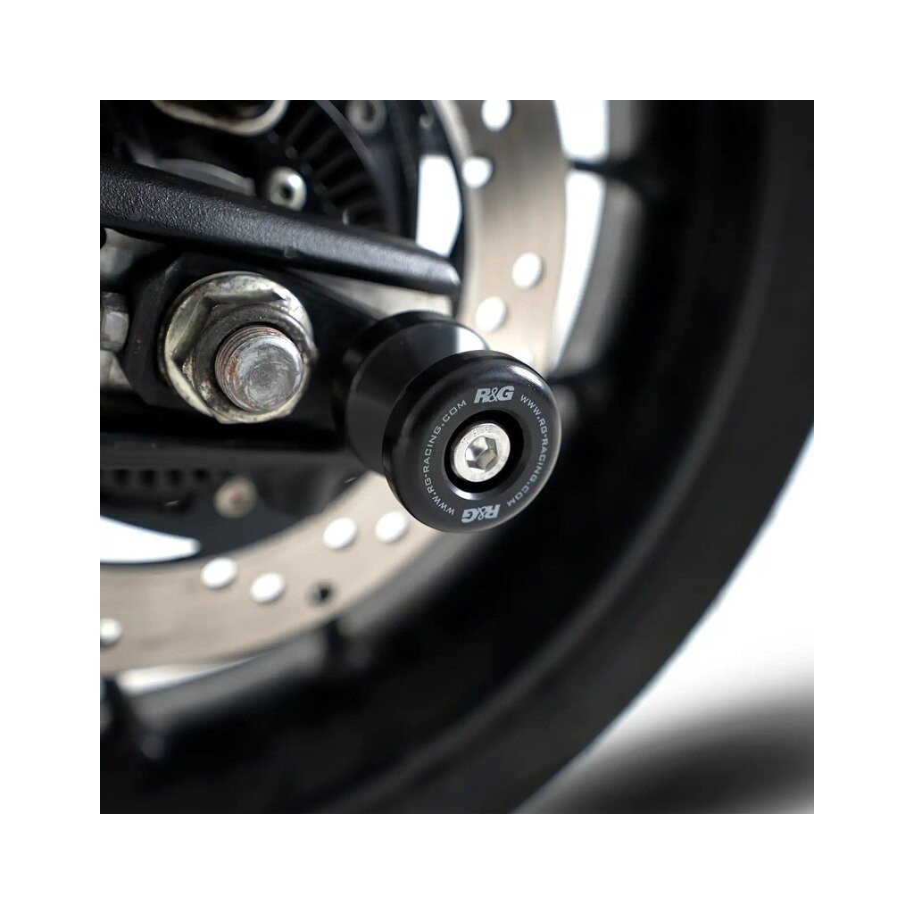 Suitable for the Triumph Speed 400 '24-, Scramber 400 X '24- models. Are they cotton reels or spindle sliders? Well, they are both really!! The Cotton Reel is mounted to a special, Stainless steel bracket. The product will give protection to the swingarm area in most crashes. Also, the bike can be lifted on the Cotton Reels, using a paddock stand with hooks (suggest R&G code SH0001).