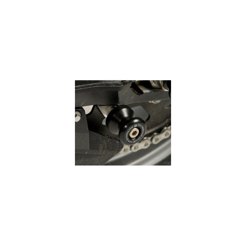 Les pions de bras-oscillant R&G Racing permettent de protéger la partie arrière basse de la moto en cas de chute.