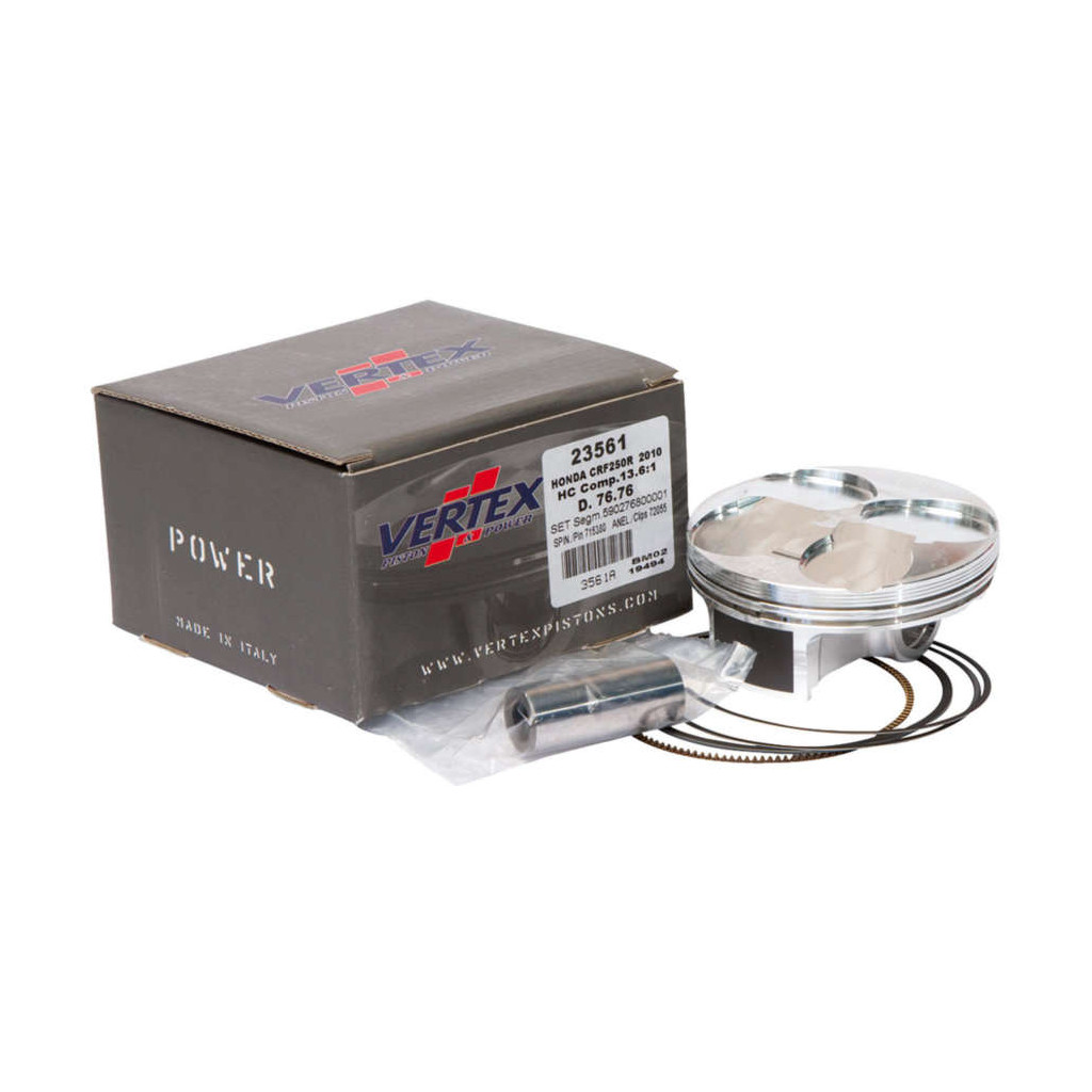 En équipant les meilleurs teams en mondial MX, Vertex a profité du fabuleux banc d’essai que propose la competition de haut niveau pour développer la nouvelle gamme de pistons «Racer’s choice»(1). Le soucis du détail, pour améliorer le rendement et la fiabilité des moteurs déjà performants, a été poussé à ses limites.