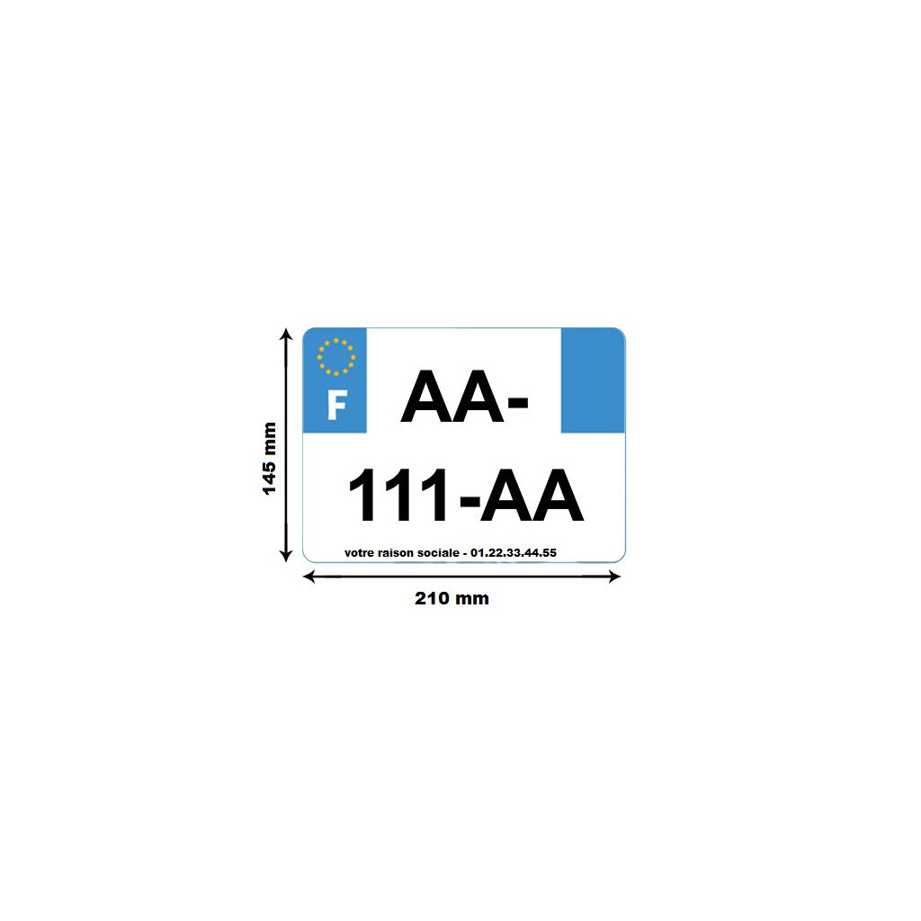 Plaques d’immatriculation en PVC dimension 210 x 145mmBlanches avec logo FLogo de région & numéro de département