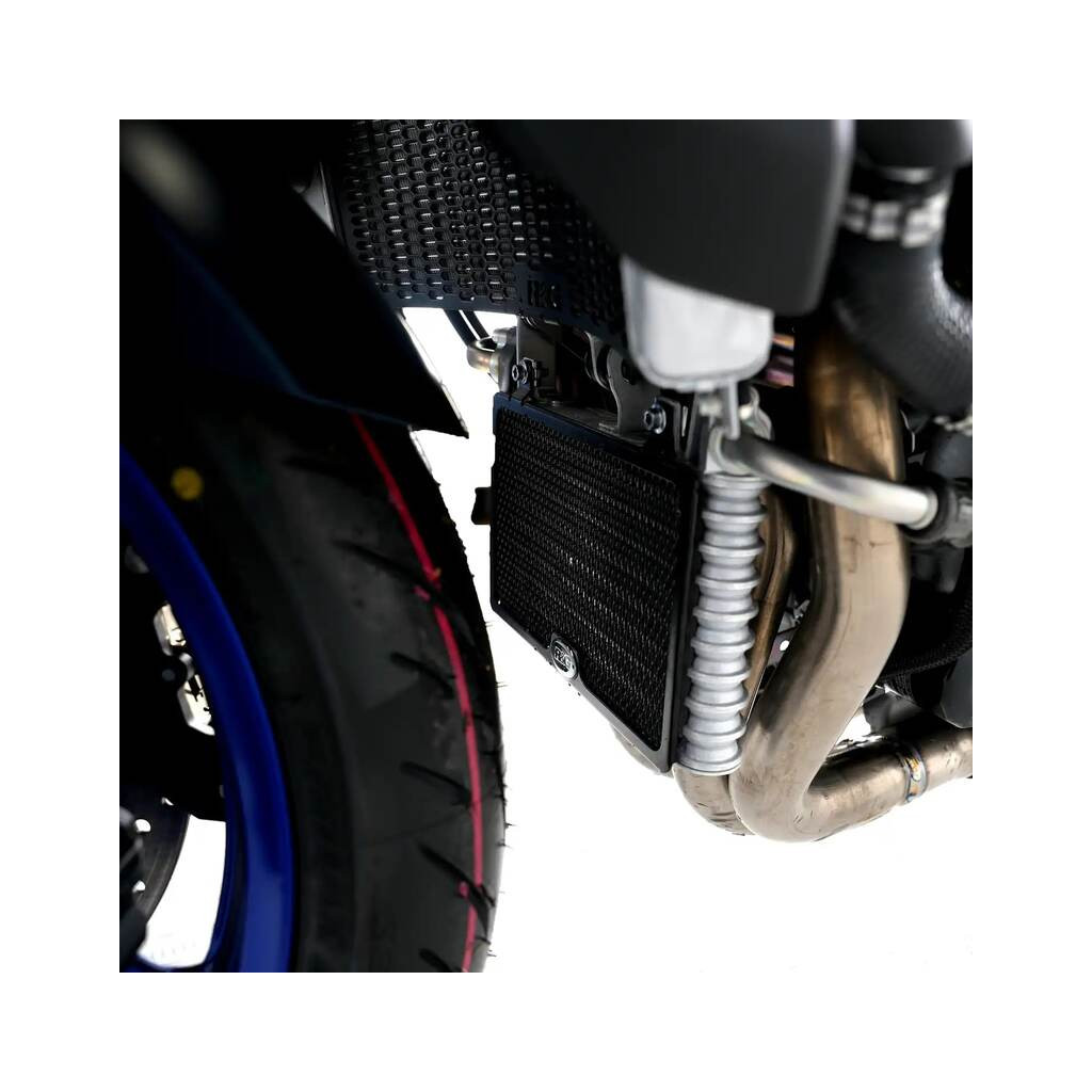 La protection de radiateur d'huile PRO présente un nouveau design géométrique "Hexa" optimisant la circulation d'air. Usinée dans une seule pièce d'aluminium léger de qualité, elle offre un excellent rapport résistance/poids.