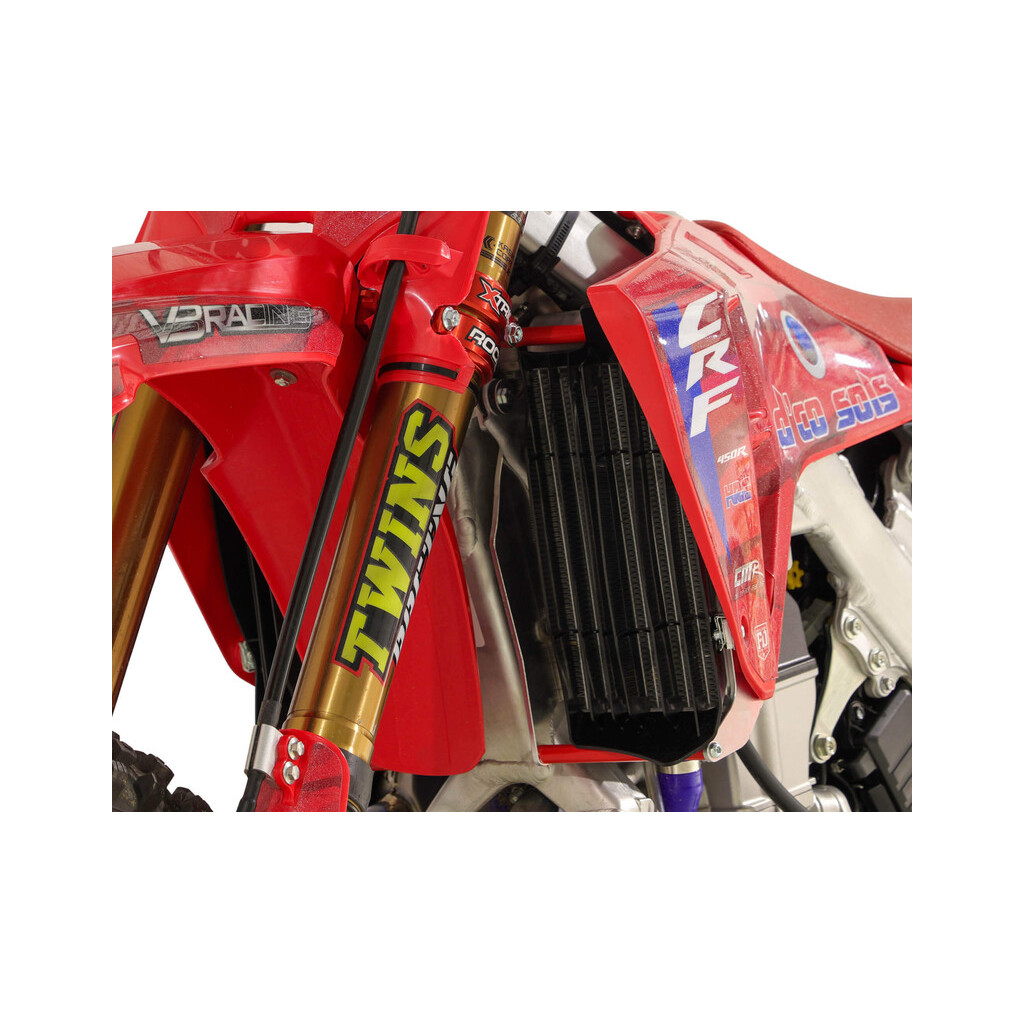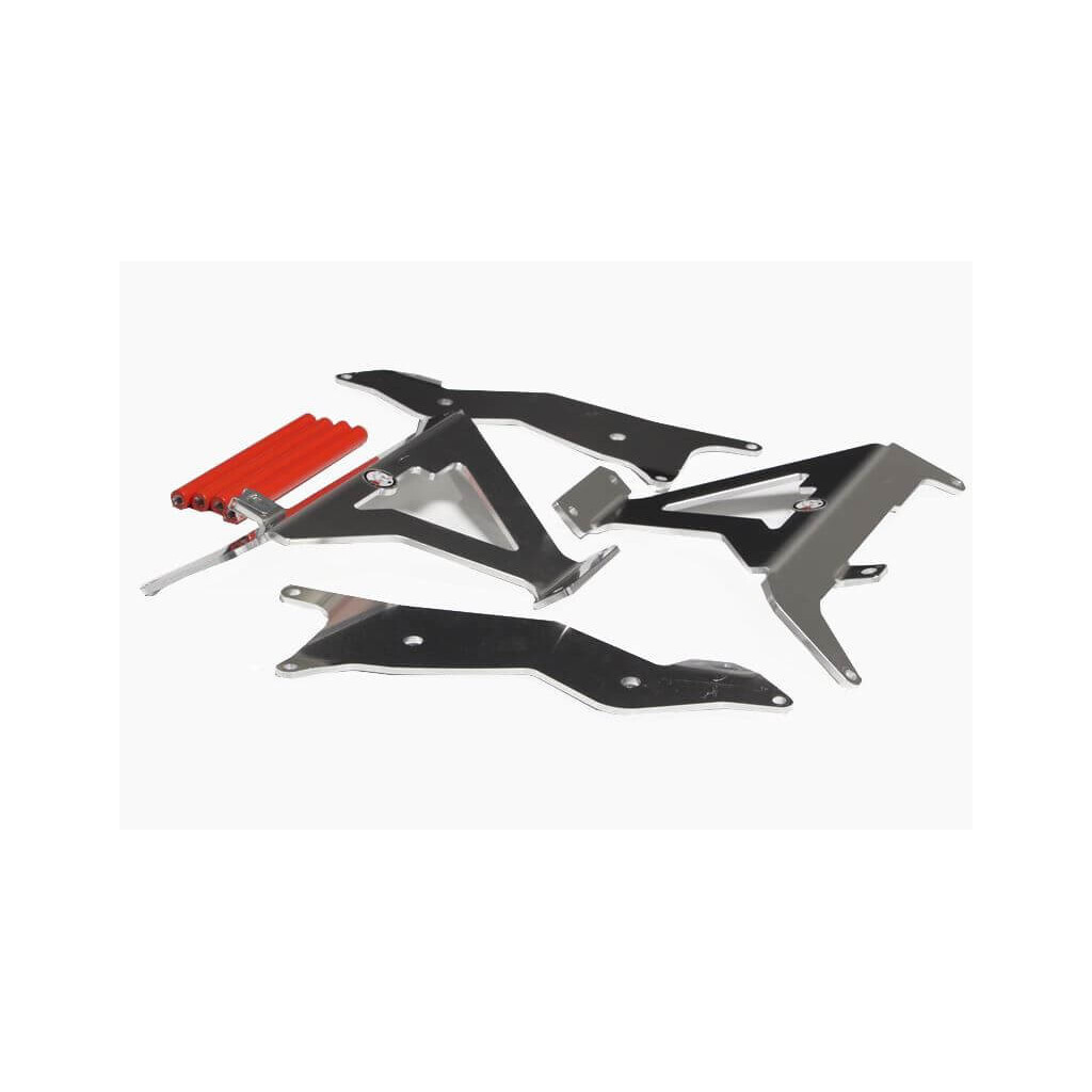 Protections de radiateurs standard pour Honda CRF450R / RX – Poids : 1,1kg – Usinées dans une plaque d’aluminium d’épaisseur 4mm et ultra légères, les protections de radiateurs AXP se fixent en trois points : deux à l’avant et un à l’arrière. Cette conception protège latéralement vos radiateurs en cas de chutes lentes mais les empêchent également de reculer lors d’impacts à haute vitesse. Les protections sont fournies pour les deux côtés avec toute la visserie nécessaire au montage. Compatibles uniquement avec les Honda CRF450R / CRF450RX. ATTENTION, cette référence ne se monte pas sur toutes les années du modèle. NOTE : Le pilotage tout-terrain implique des contraintes importantes et des risques d’impact sur la moto et ses composants. Les produits AXP Racing sont conçus pour améliorer la protection et la durabilité ; toutefois, ils ne peuvent être considérés comme une garantie infaillible contre les dommages. AXP Racing décline toute responsabilité pour les dommages résultant de l’utilisation, des chocs ou d’une mauvaise utilisation.
