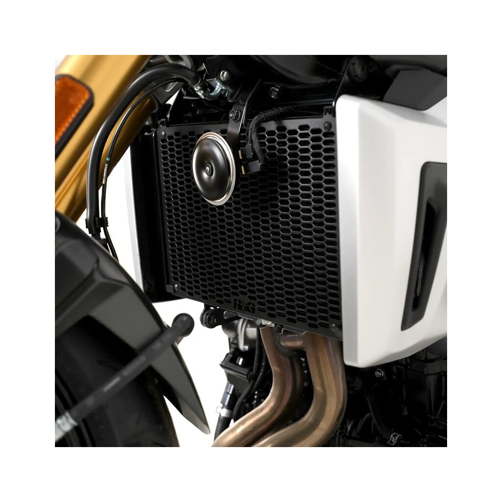 The laser-cut design is modern and complements any bike's look. What’s more, thanks to the striking, textured, matt-finish powder coating, R&G PRO Radiator Guards are corrosion-proof.