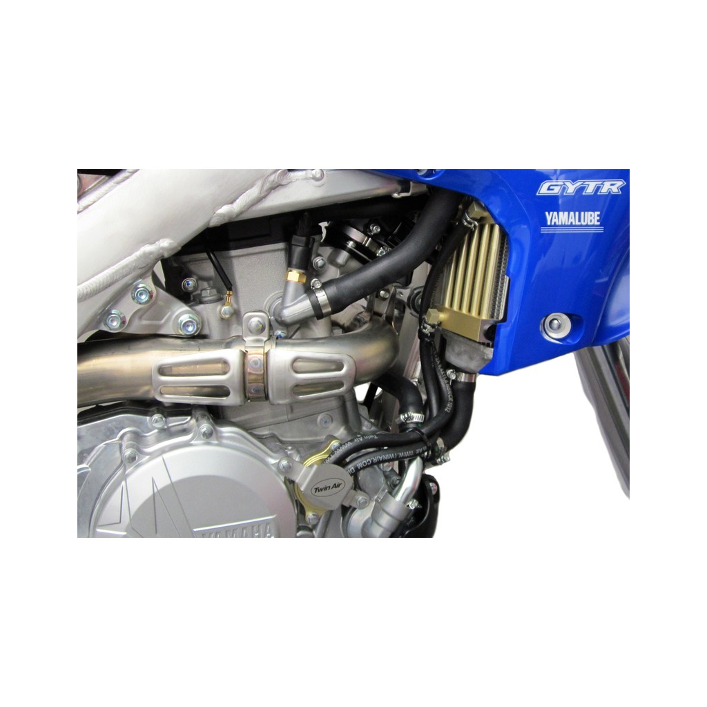 La solution Twin Air est révolutionnaire. Contrairement à d’autres produits qui utilisent le circuit d’eau, Twin air a développé le premier radiateur d’huile à air pour l’usage MX. Fixé par un panneau derrière le radiateur d’eau, l’huile circule des flexibles au radiateur, maximisant les échanges thermiques.