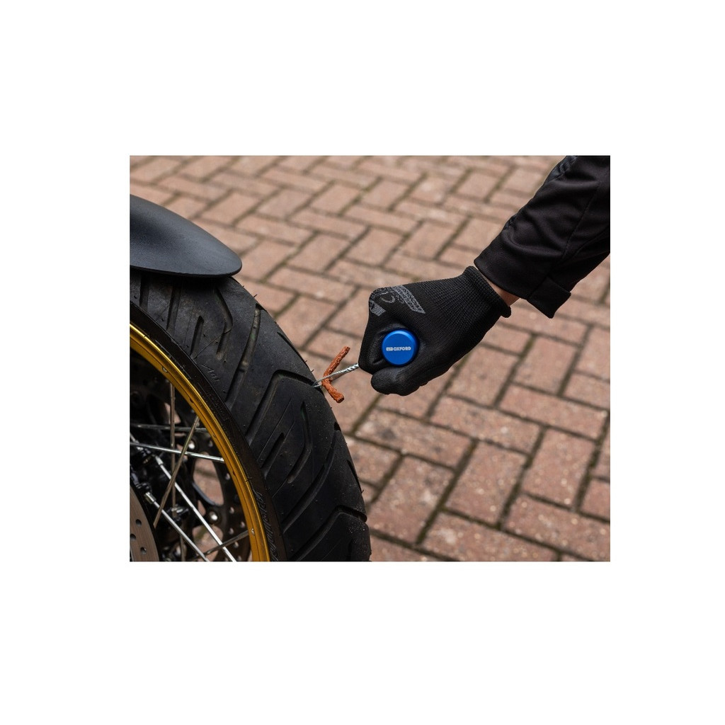 Kit de réparation pneu OXFORD Plug-It XL. Répare rapidement les crevaisons sans démonter le pneu. Contient 5 mèches de réparation XL. Outil d'insertion inclus. Compact et portable. Idéal pour dépannage d'urgence.