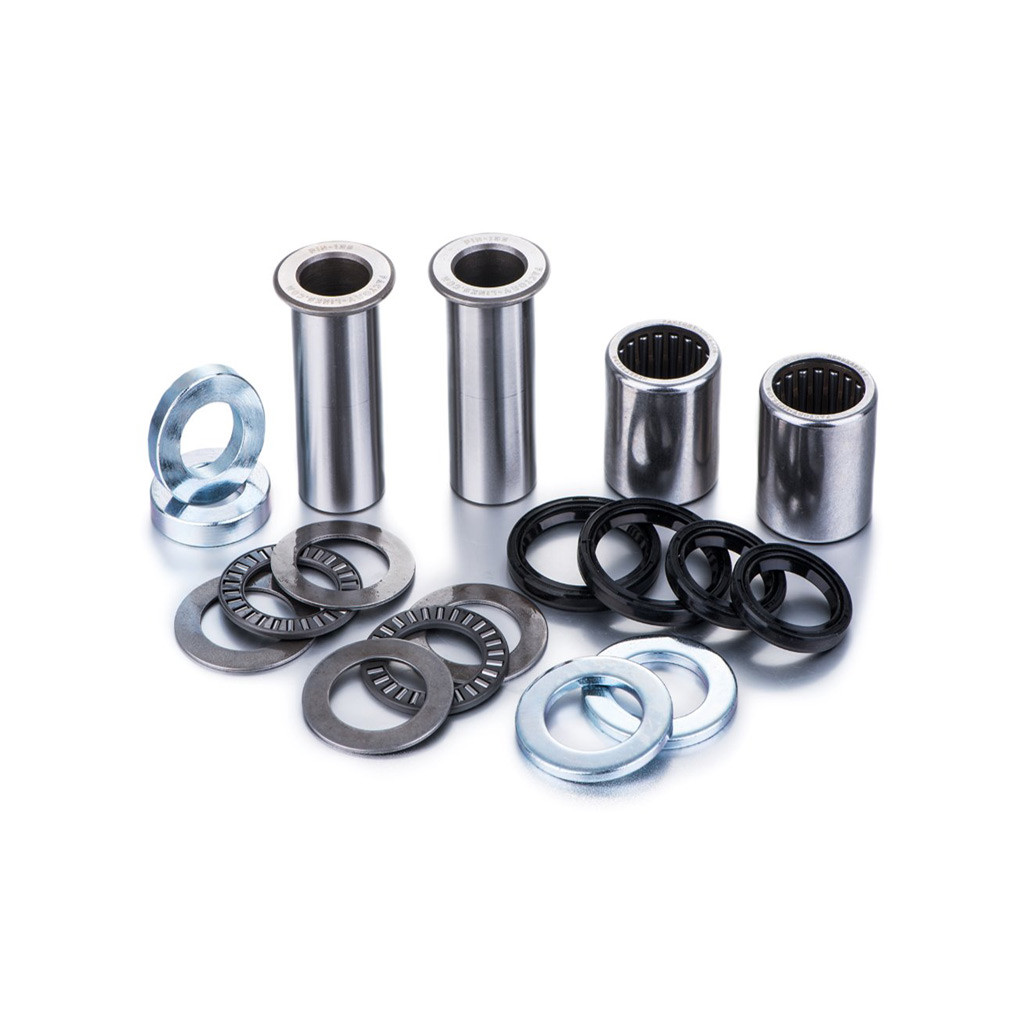 Nos kits contiennent tous les éléments nécessaires au reconditionnement de bras oscillant, les roulements, bagues, entretoises et joints sont de qualité origine; cela permet de garantir un retour aux performances et au fonctionnements établis par le constructeur.